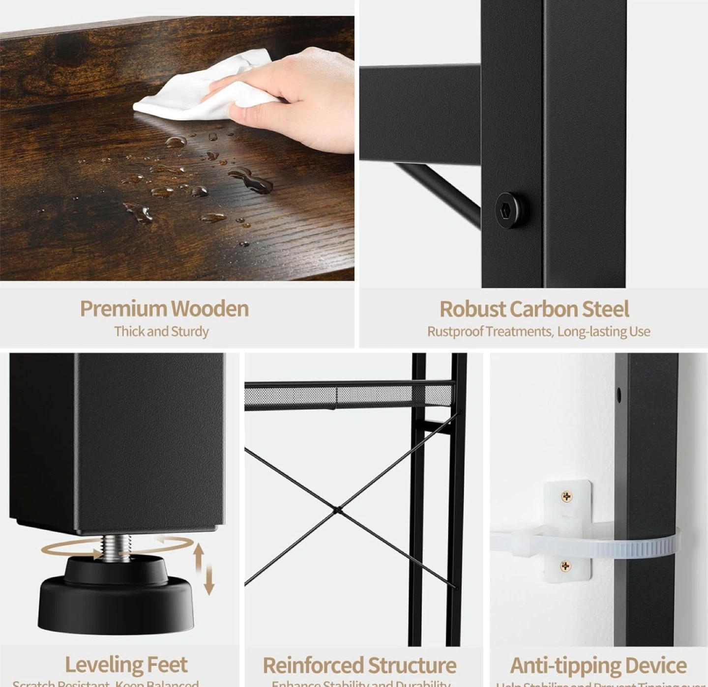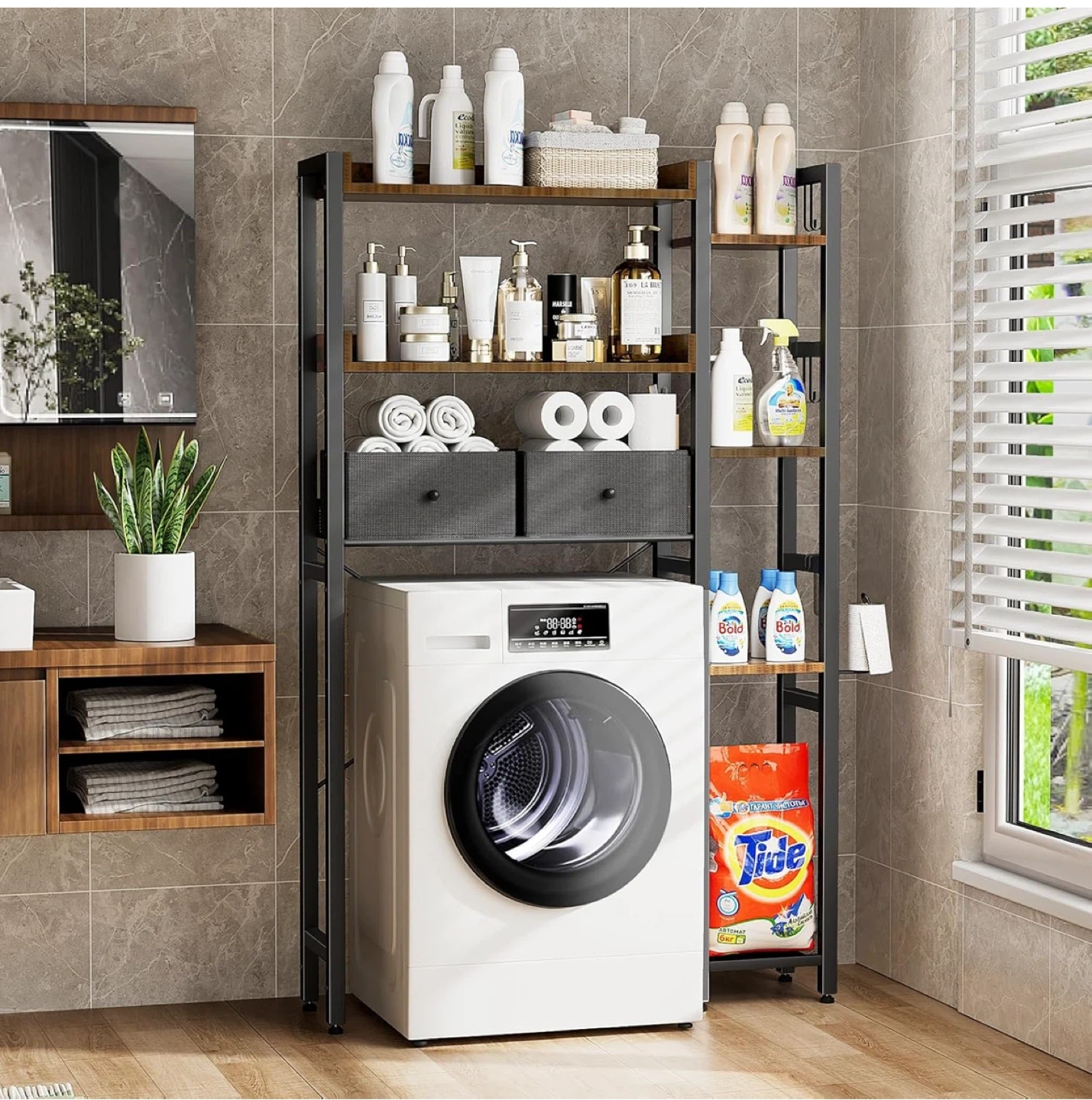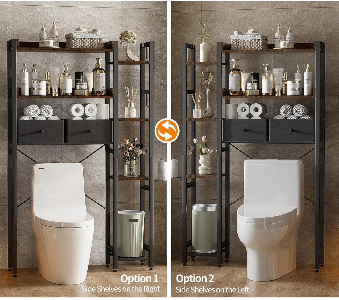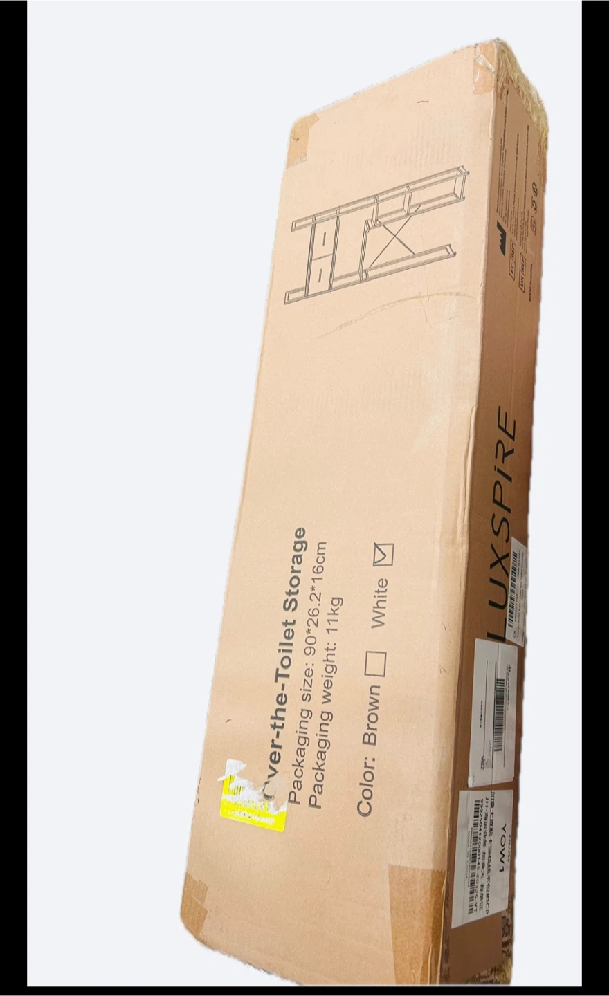 23This LUXSPIRE over-the-toilet storage shelf is perfect for adding extra storage to your bathroom or laundry room! The packaging size is 90*26.2*16cm and the packaging weight is 11kg. The color is brown. It comes with its original box