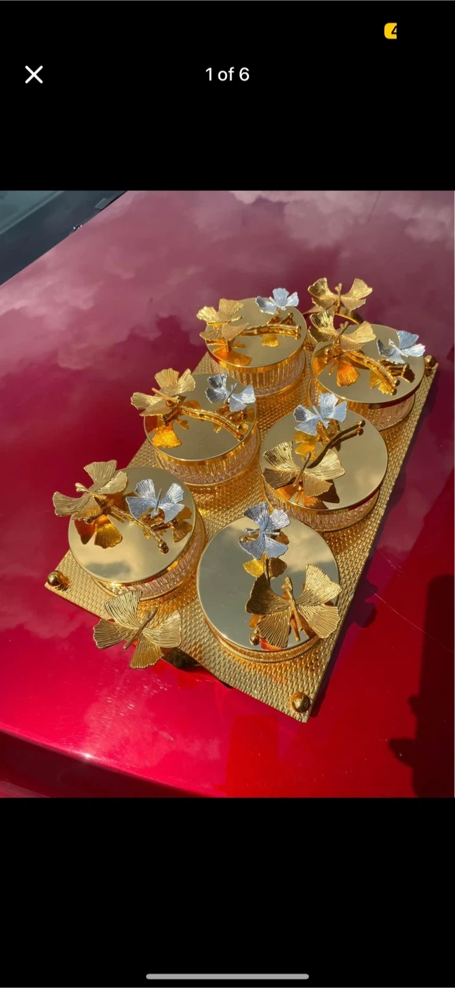 23This elegant set includes 6 beautifully crafted glass jars with gold and silver butterfly lids and a matching gold tray perfect for candies, spices, Turkish delight, or as a unique decorative centerpiece. A wonderful housewarming, wedding, or Christmas gift for anyone who loves fine home décor. #luxurydecor #glassjarset #butterflydecor #homedecor #candyjar #spicejar #goldaccent #giftideas #karrot #centerpiece #hostessgift #uniquekitchen #christmasgift