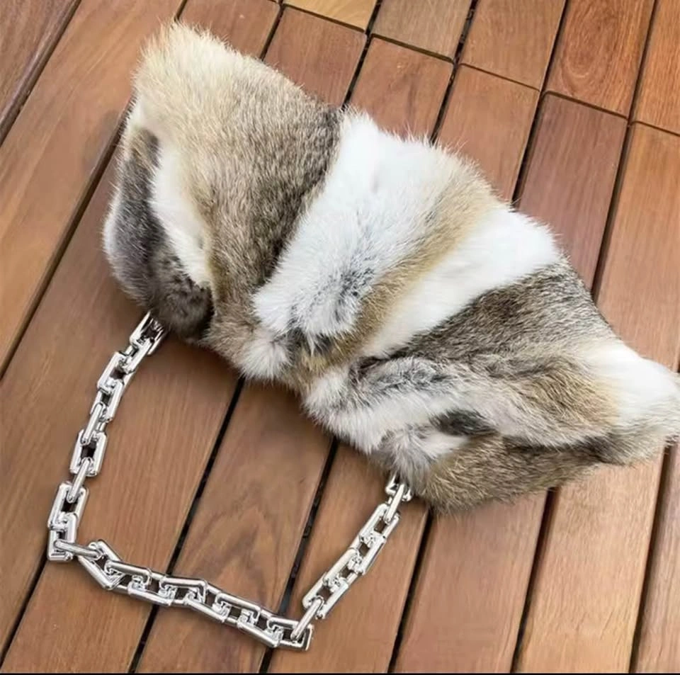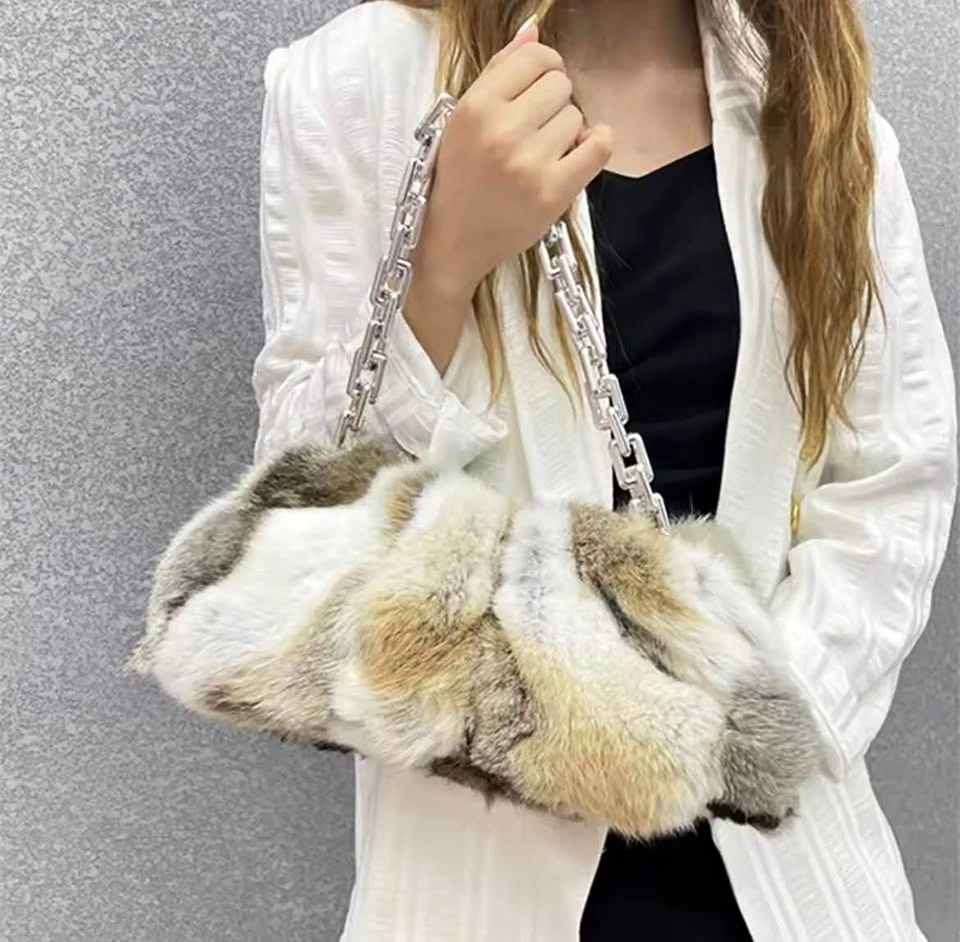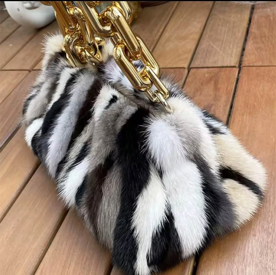 Luxury Mink-Style Fur Cloud Bag w/ Statement Chain
