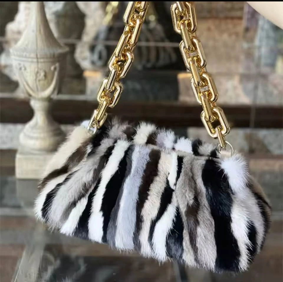 Brand New, Chic Winter Essential Fur Cloud Bag Get the "it bag" look for the upcoming winter season! This stunning bag features the trendy "Cloud" ruched design and is made with a plush, soft Mink-Style Luxury Fur (or High-Quality Fur) with a striking Zebra print. It's the perfect statement piece to elevate any outfit. Key Style Features: • Design: Fashion-forward "Cloud" shape and a secure clip closure. • Material: High-Quality, plush fur (Mink/Rabbit style) for a luxurious winter feel. • Strap: Comes with a detachable, Chunky Statement Chain that instantly adds glamour. Can be worn as a shoulder bag, crossbody, or carried as a clutch. • Style Trend: Aligns with the 2025 new winter luxury handbag design trends. Priced competitively at C$175 for a new, high-style fur accessory. Limited stock available for this unique winter essential.