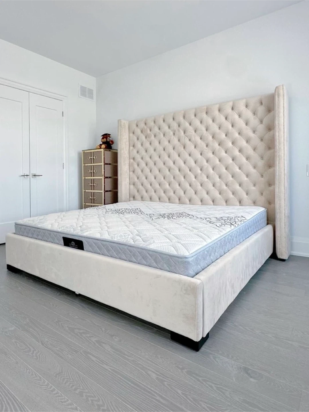 59Selling a beautiful luxury velvet upholstered wingback bed frame! It's in great condition and would look lovely in any bedroom. The neutral colour makes it easy to match with any decor. If you're looking to upgrade your sleeping space, this could be the perfect piece! Dimensions: 220cm x 180cm x 26cm Pickup location : Hwy 7 and Bayview