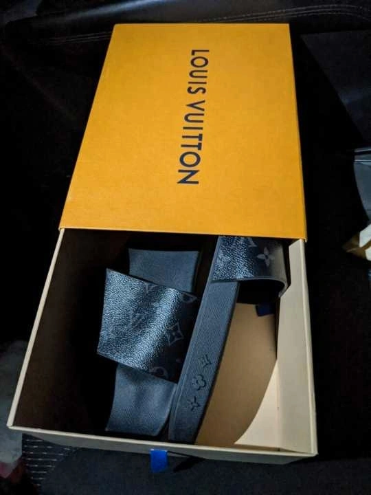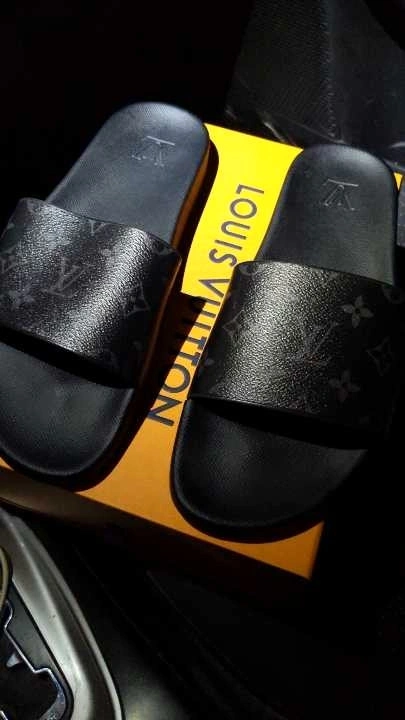 Authentic Louis Vitton men's slides for sale. Worn once, in great condition. Size 9. Model/Style: Waterfront Mule. Colour: Gray/Black. Retail price: $895. Asking $475.