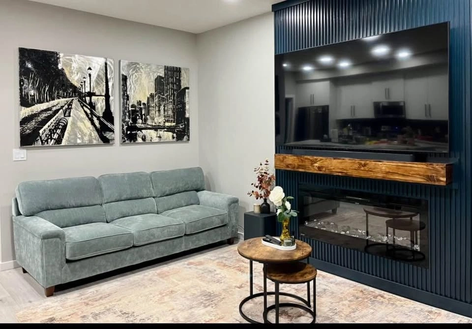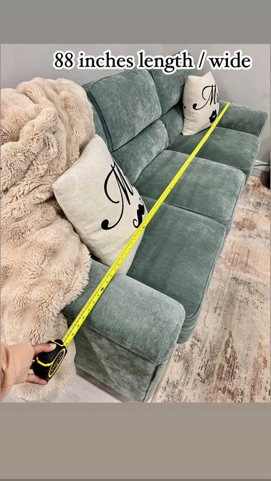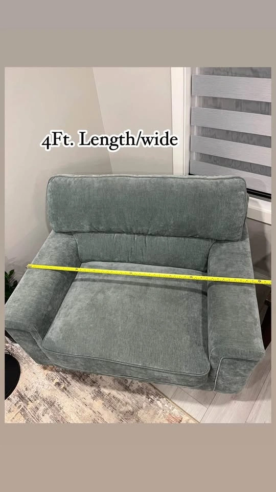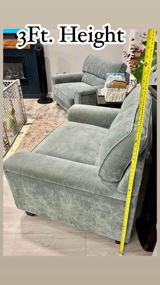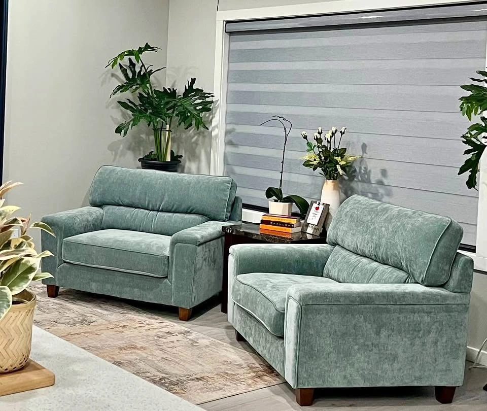 Like new very comfortable Lyric sofa(green) sets from The Bricks. Washable cushion covers. Comes with 2 throw pillows. Free brown round center table if you like it. Armchair: 3Ft. Height x 4ft. Length/wide x 3.33Ft. Depth 4-5seaters: 3Ft. Heights x 7.33ft. Length/wide x 3.33ft. Depth