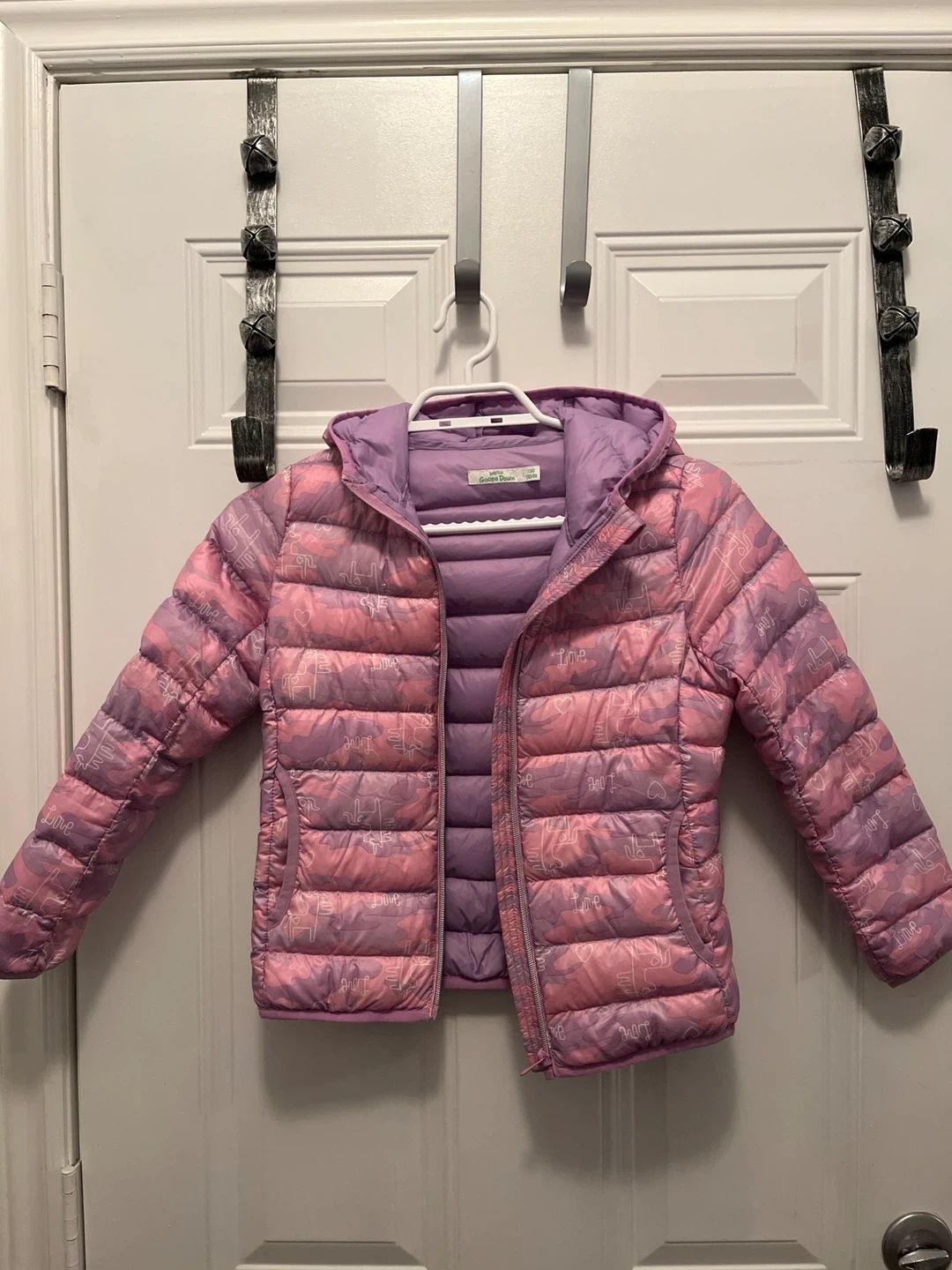 10This Goose Down puffer jacket is in great condition! It's a cute pink and purple colour. - Size 130 - Shell: 100% polyester - Lining: 100% polyamide - Filling: 90% down, 10% feather - Lightweight and packable for convenience