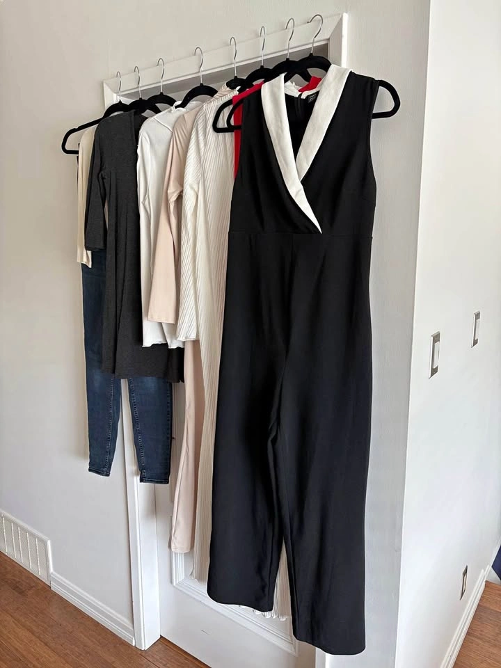 15Selling some no longer needed maternity clothes for someone else to put to use! -Romper -Short red dress -Long white dress + slip -Skinny jeans -Black slacks (not pictured) -3 long-sleeved shirts All size M/L except 2 of the shirts which are size S but fit me just fine.