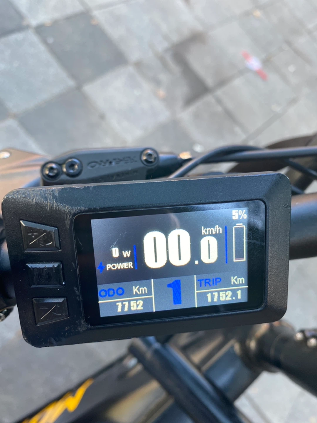 Selling a used Mövin electric bike. The odometer reads 7752 km and the trip meter shows 1752.1 km. It's still in good condition and ready for some more rides!
