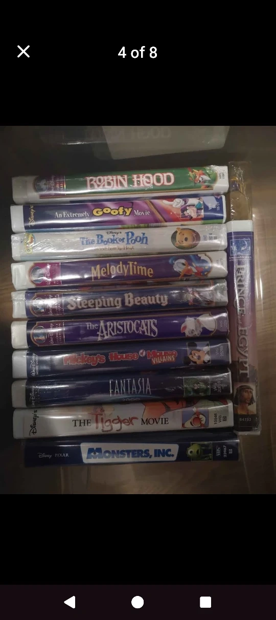 Selling a collection of Disney VHS tapes! Includes classics like Toy Story, Robin Hood, Alice in Wonderland, and many more. Perfect for any Disney fan looking to relive the magic of these timeless stories.