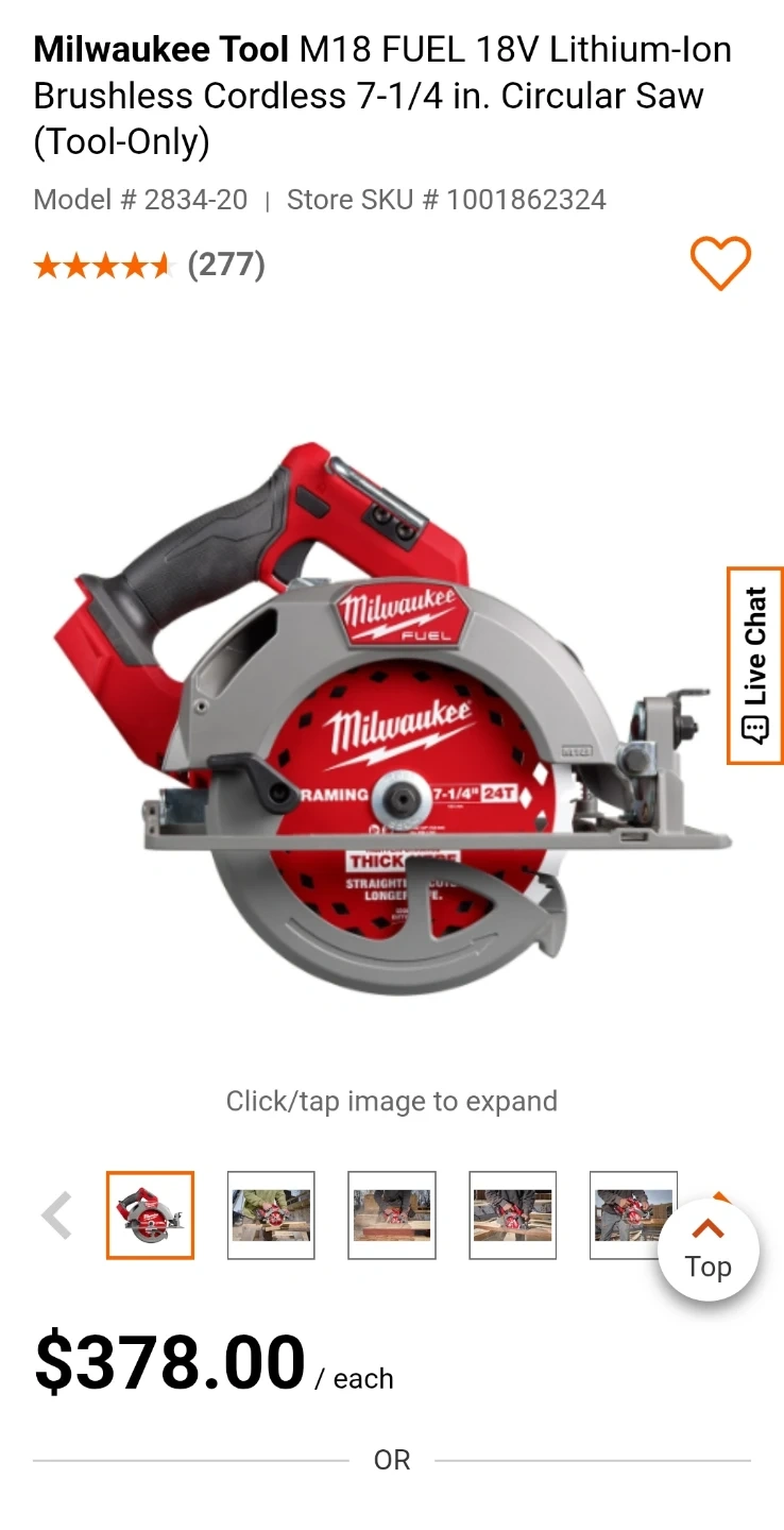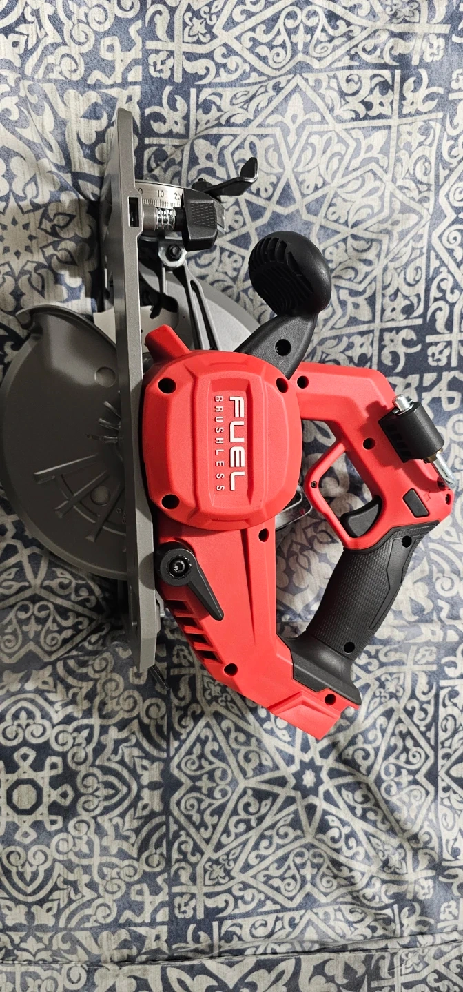 Brand new never been used (2834-20 The MILWAUKEE M18 FUEL 7-1/4” Circular Saw is designed for the professional carpenter, remodelers, and general contractors who rely on high-performing and durable tools. The POWERSTATE Brushless Motor delivers 6,000 RPM, maintaining high speed under load. When paired with an M18 REDLITHIUM FORGE HD12.0 Battery this cordless saw delivers 750 cuts per charge and is fully compatible with all M18 REDLITHIUM batteries. The ergonomic, compact, and lightweight design makes the saw a perfect solution for all-day cutting. Additionally, the saw has an electric blade break, LED work light, rafter hook, and all magnesium guards and shoes, keeping the user productive and providing the durability to handle the toughest job site conditions. REDLINK PLUS Intelligence ensures maximum performance and protects from overloads, heating, and over-discharge Up to 750 Cuts Per Charge (M18 REDLITHIUM FORGE HD12.0 battery) 2-5/8" Cut Capacity: Capability to cut 3x material in one pass Bevel detents at 22.5 and 45 degrees Depth detents at 1/2", 3/4", and 1-1/2” Integrated dust port on guard and included vac adaptor LED light for increased accuracy and visibility Integrated rafter hook for easy storage Magnesium shoe and guards for maximum durability Electric brake to stop blade after trigger is released