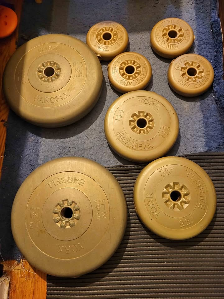 York weight plates, 2×25lbs, 2×10lbs, 4×2.5lbs!