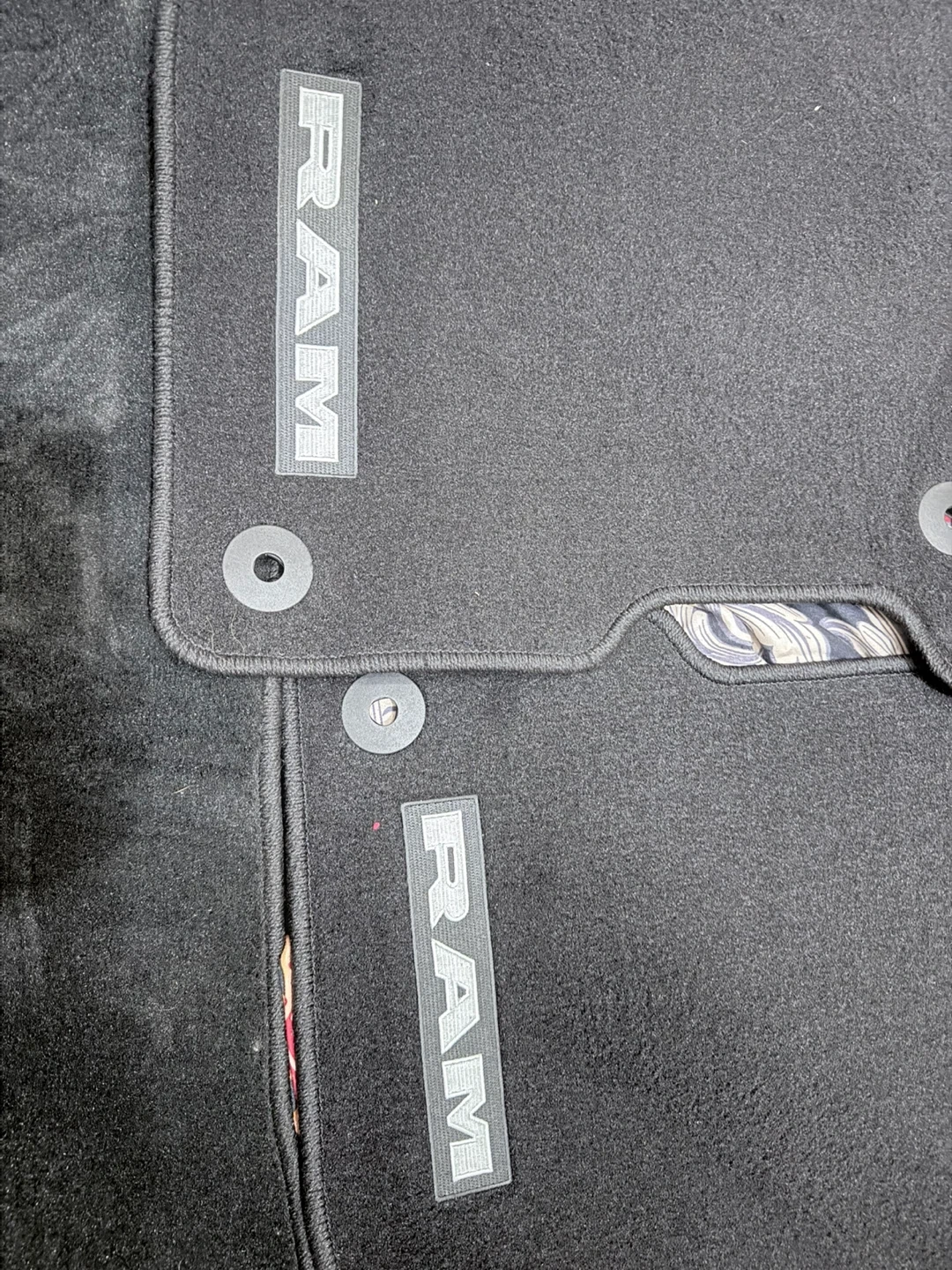 Selling a set of four black floor mats for a RAM 1500 vehicle. They are brand new and have the RAM logo on them. Perfect for keeping your car clean!