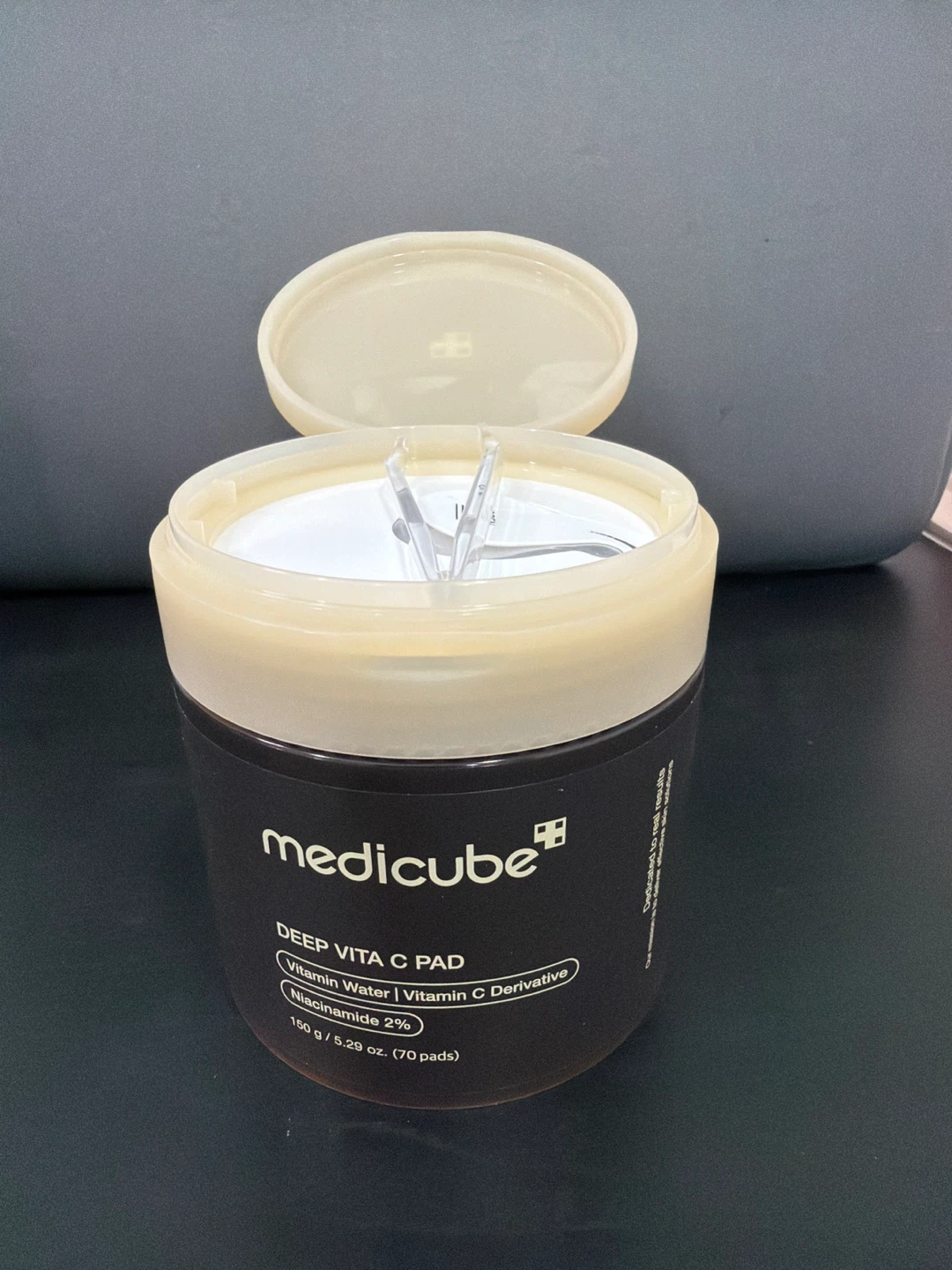 Medicube Deep Vita C Pads. Contains Vitamin Water and Vitamin C Derivative with Niacinamide 2%. 150g / 5.29 oz. Perfect for skincare routines!