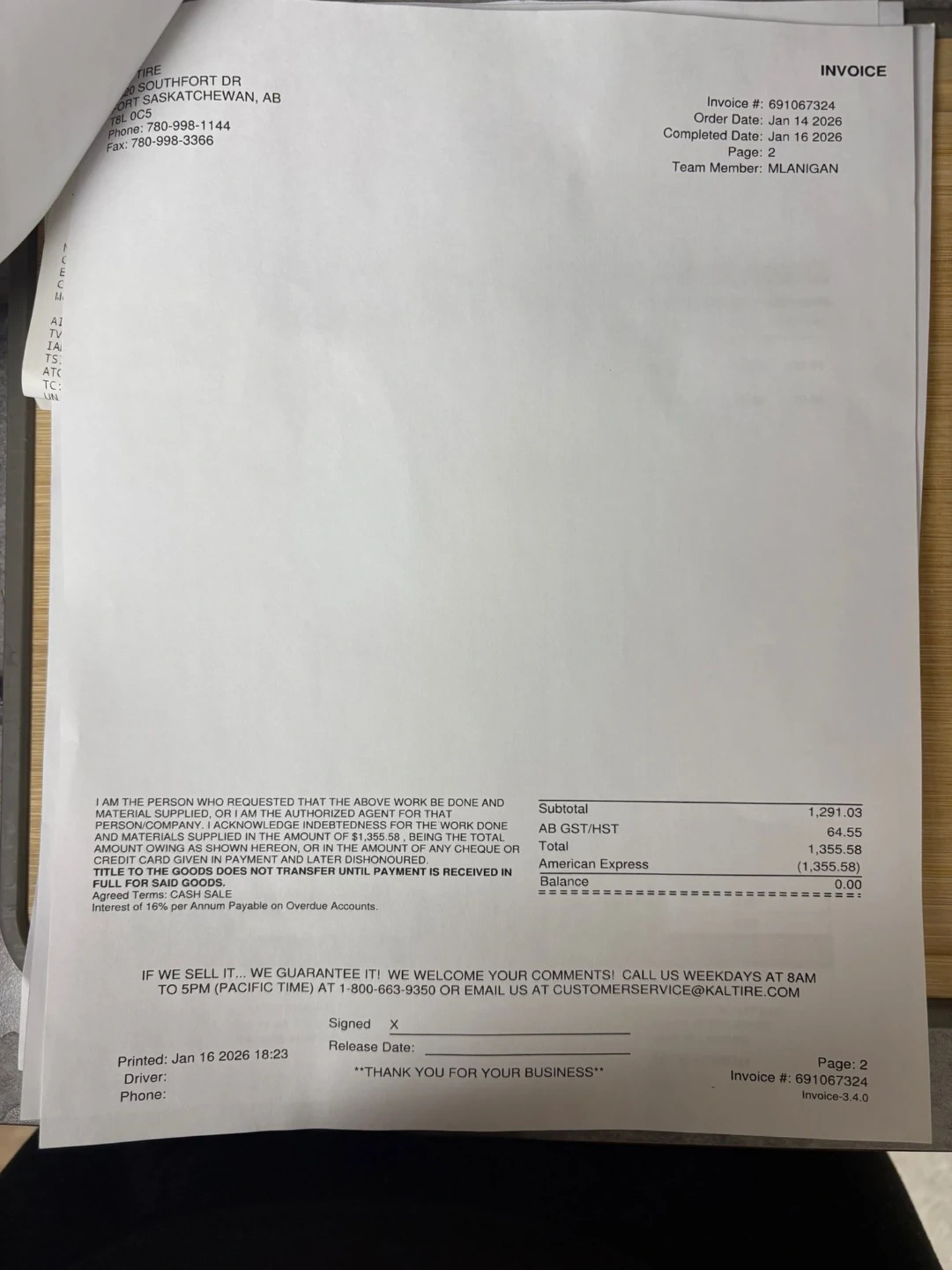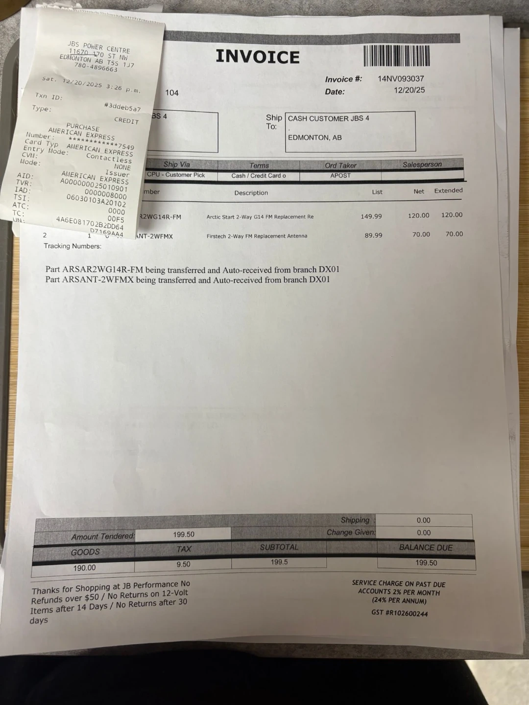Recently installed new parts