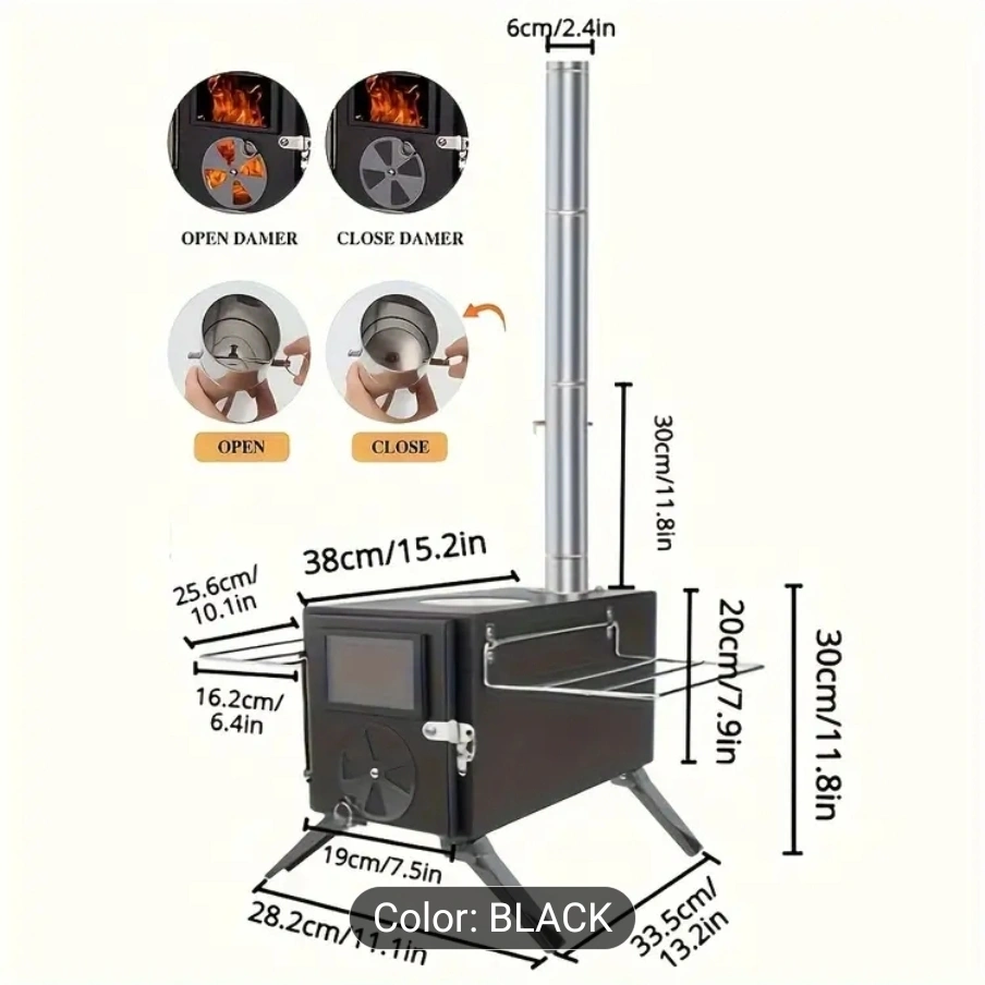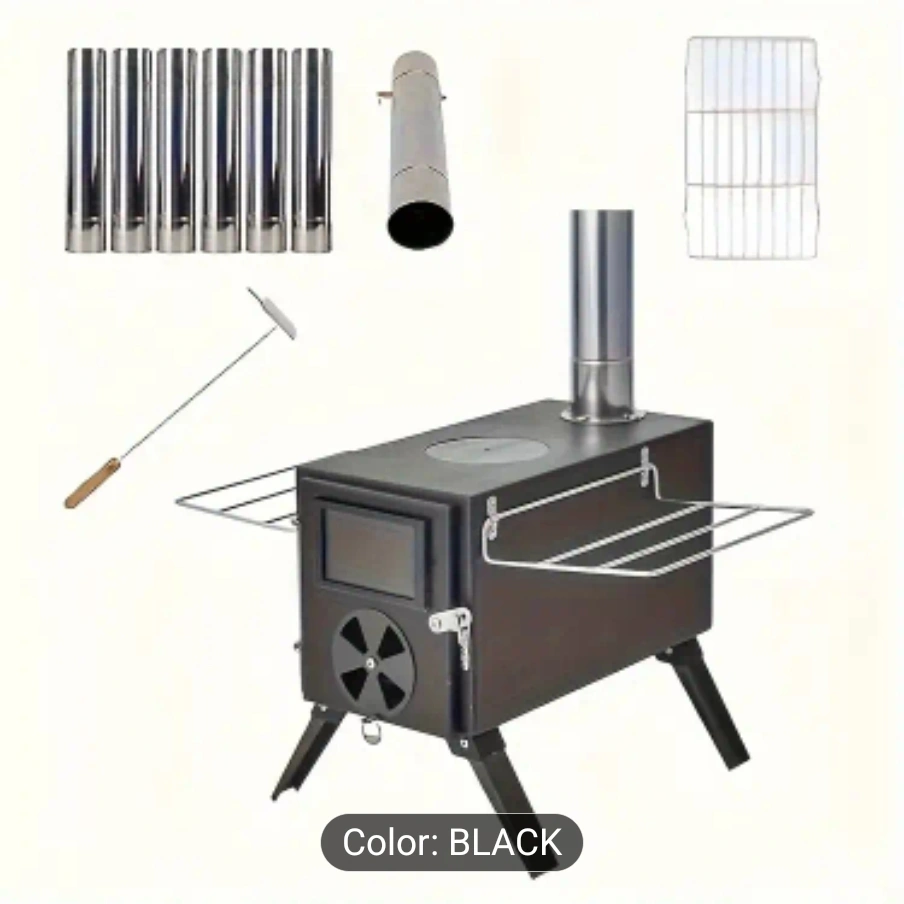 Black Wood Burning Camp Stove - Multi-Fuel Tent Equipment