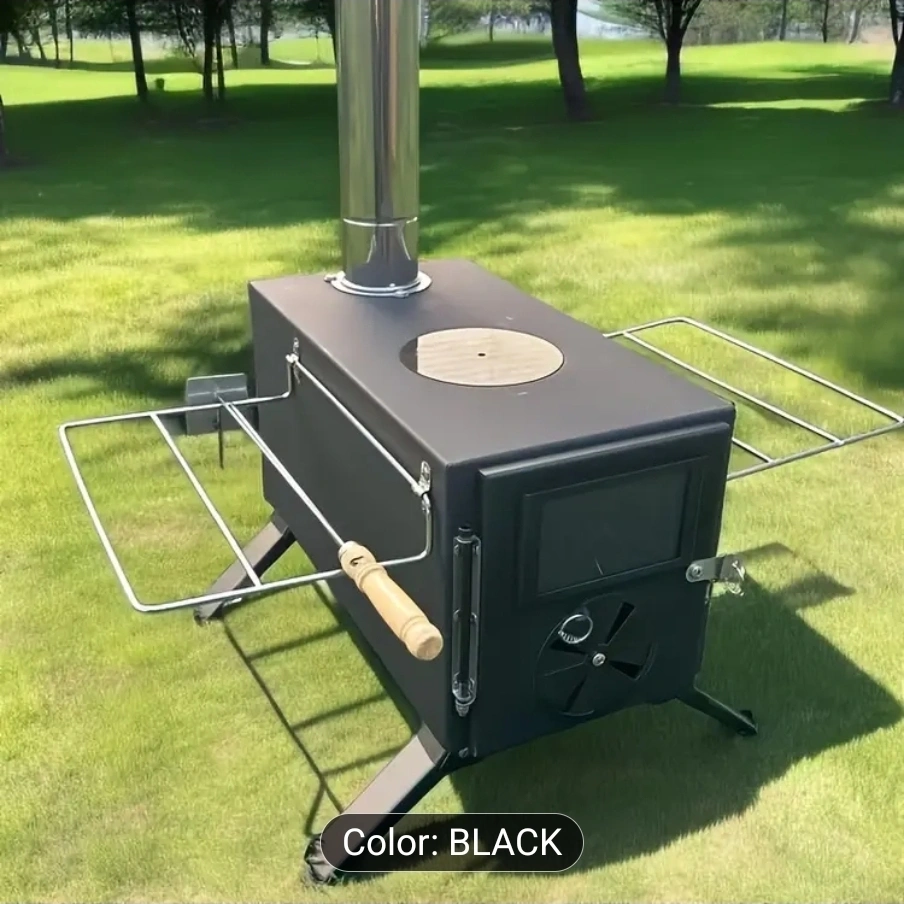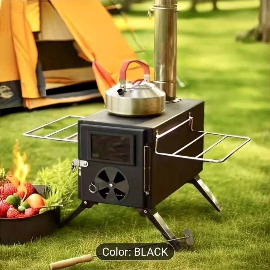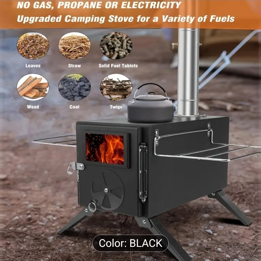 Black Wood Burning Camp Stove - Multi-Fuel Tent Equipment