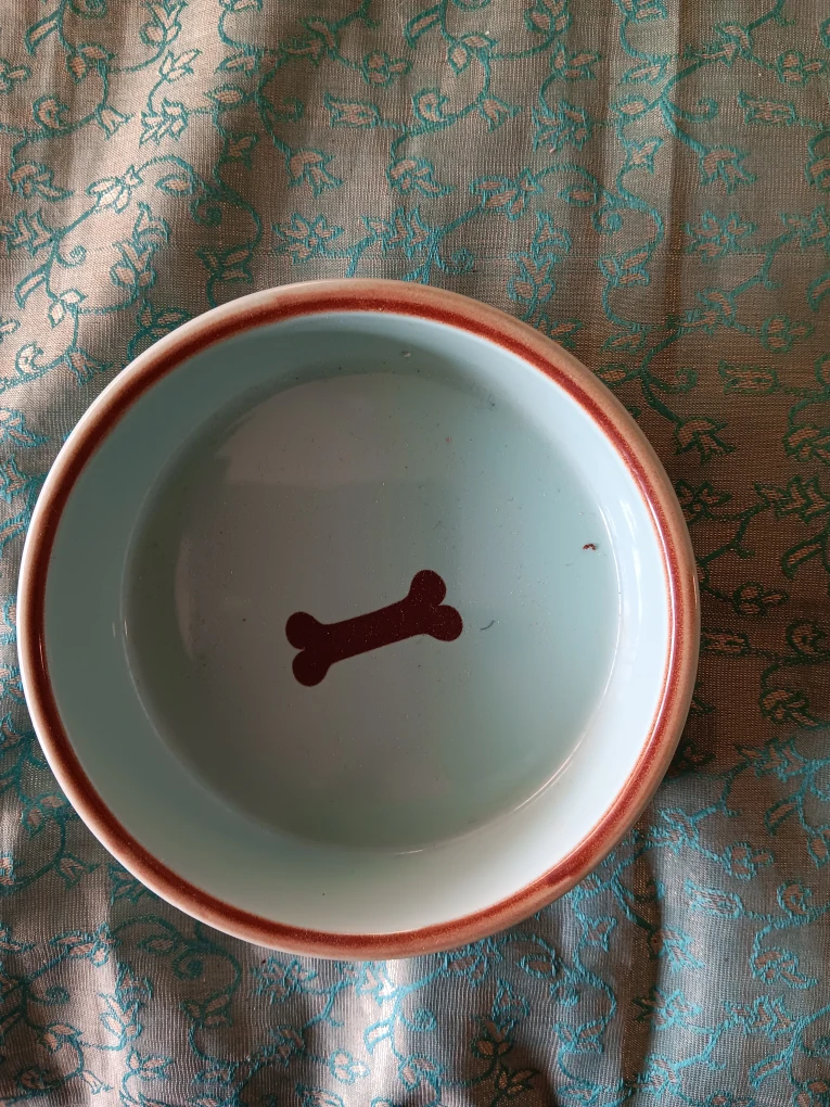 Selling a super cute dog bowl from Top Paw! It has a fun bone design around the outside and a bone graphic in the middle of the bowl. It’s microwave and dishwasher safe, making it easy to clean. Perfect for your furry friend!