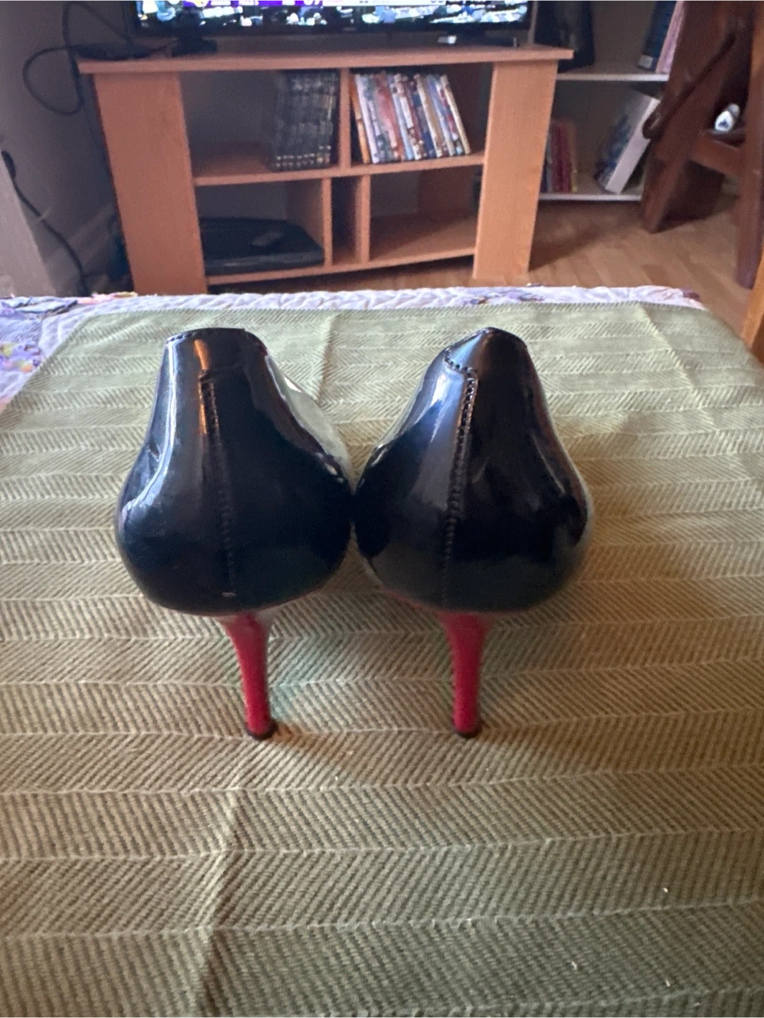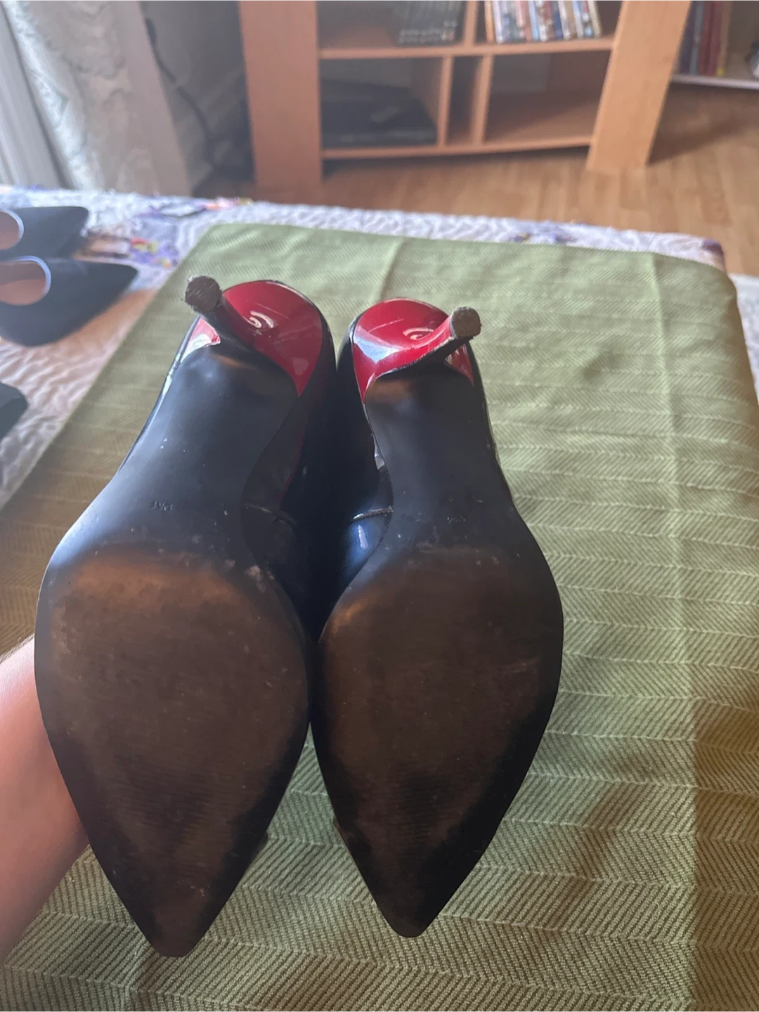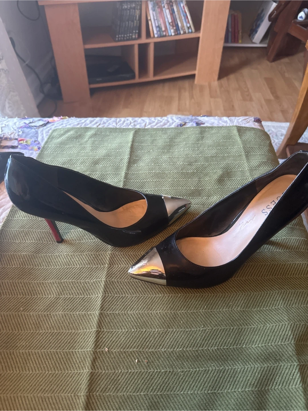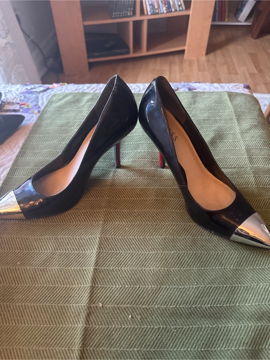 Guess Women's Black Patent Heels with Silver Toe Cap