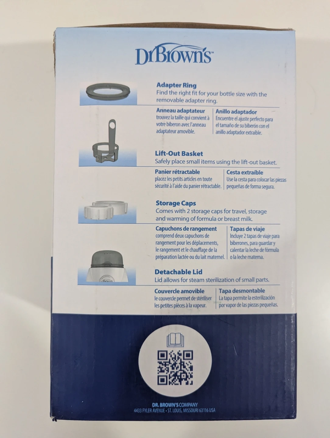 FORMULA AND BREAST MILK WARMER. The 2-in-1 baby bottle warmer and sterilizer uses gentle steam heat to quickly and evenly warm contents with the press of a button. Fits all Dr. Brown’s baby bottles and most other bottle brands.