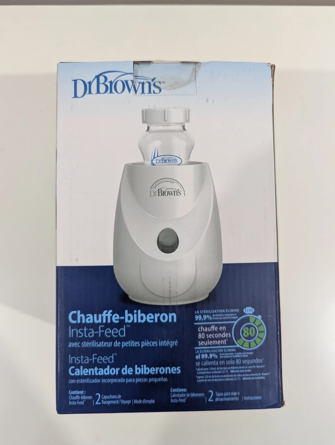 BABY BOTTLE WARMER AND STERILIZER. Warm baby bottles and food jars in as little as 80 seconds with Dr. Brown’s Insta-Feed Bottle Warmer and Sterilizer!