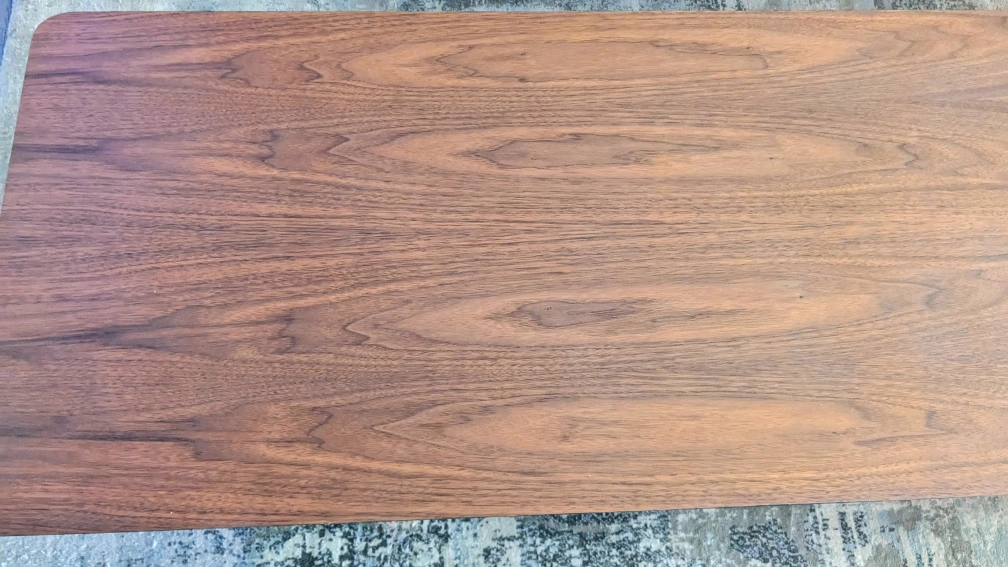 Absolutely stunning Elm Coffee Table. A timeless classic these MCM pieces. Completely restored to her original beauty to allow the grain to shine through. Sealed with Osmo Polyx Oil. Trim and underside finished in Fusion Cast Iron (black).