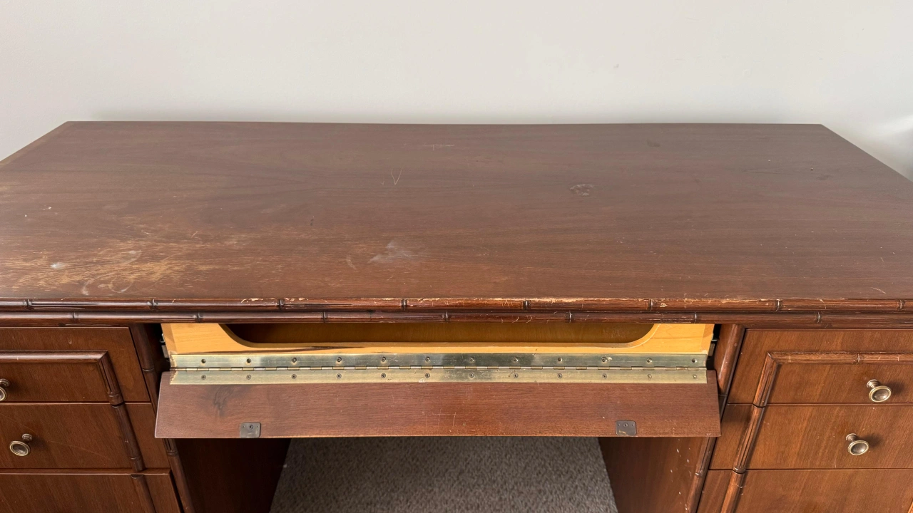Heavy-duty vintage desk in great structural condition. Not like the flimsy modern ones!