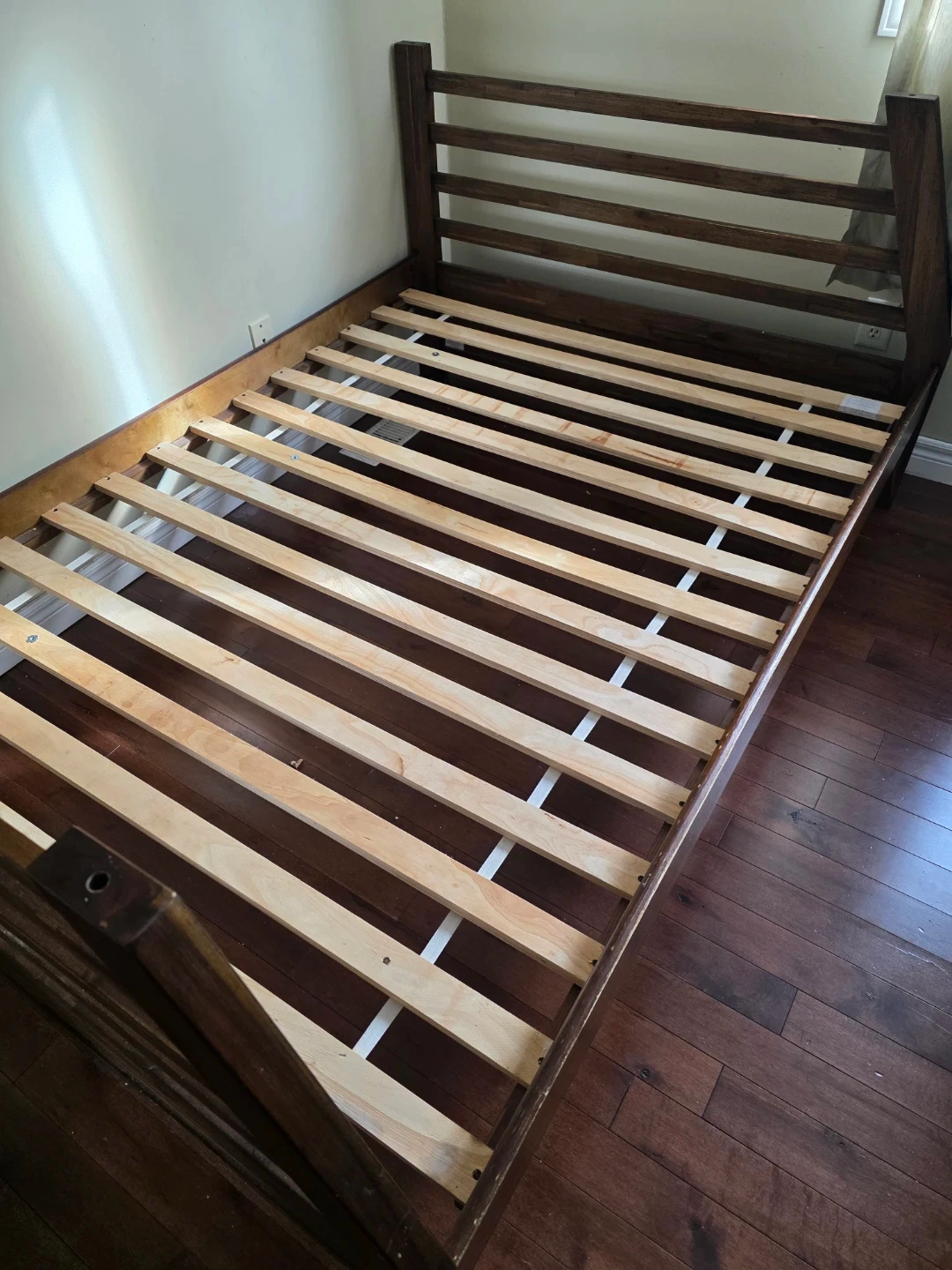 Buy & SellWooden Bed FrameWooden Bed Frame$20Dark wood bed frame with slatted base. Solid wood construction.ConditionGoodWHERE TO MEEThouseView MapSELLERverifiedmouaadHighland West822 reviews1 chats·0 favorites·79 viewsSEND CHAT TO SELLERHi mouaad! I’m interested in your listing.Hi mouaad! I’m interested in your listing.Get the Karrot app to chatSign In to chat