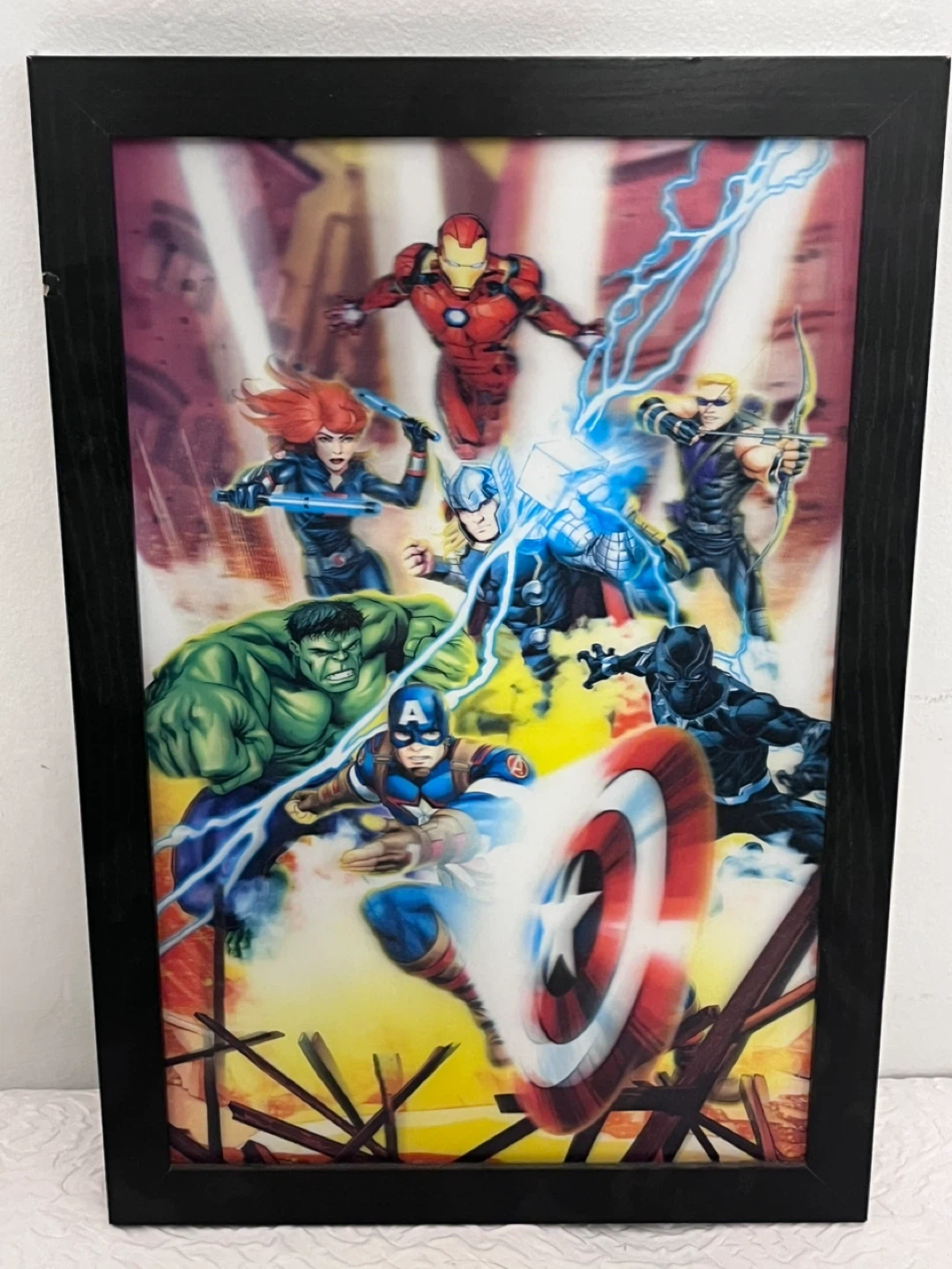 This framed art piece features the iconic Avengers team in a dynamic comic book style. It's perfect for any Marvel fan's collection. Ready to hang!