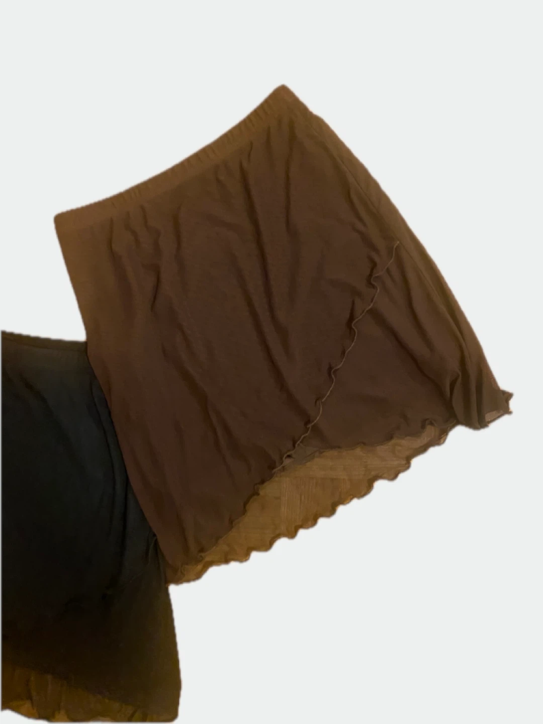 Selling two cute y2k skirts! One is a dark brown and the other is black. S-M elastic waistband..super comfy..lined with sheer overlay!