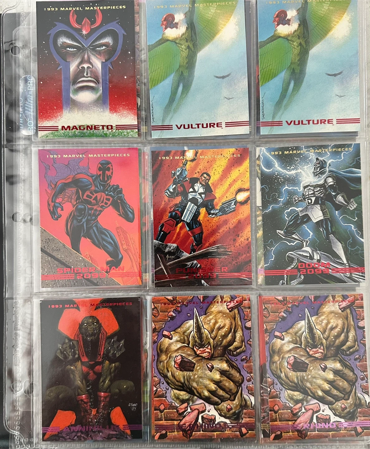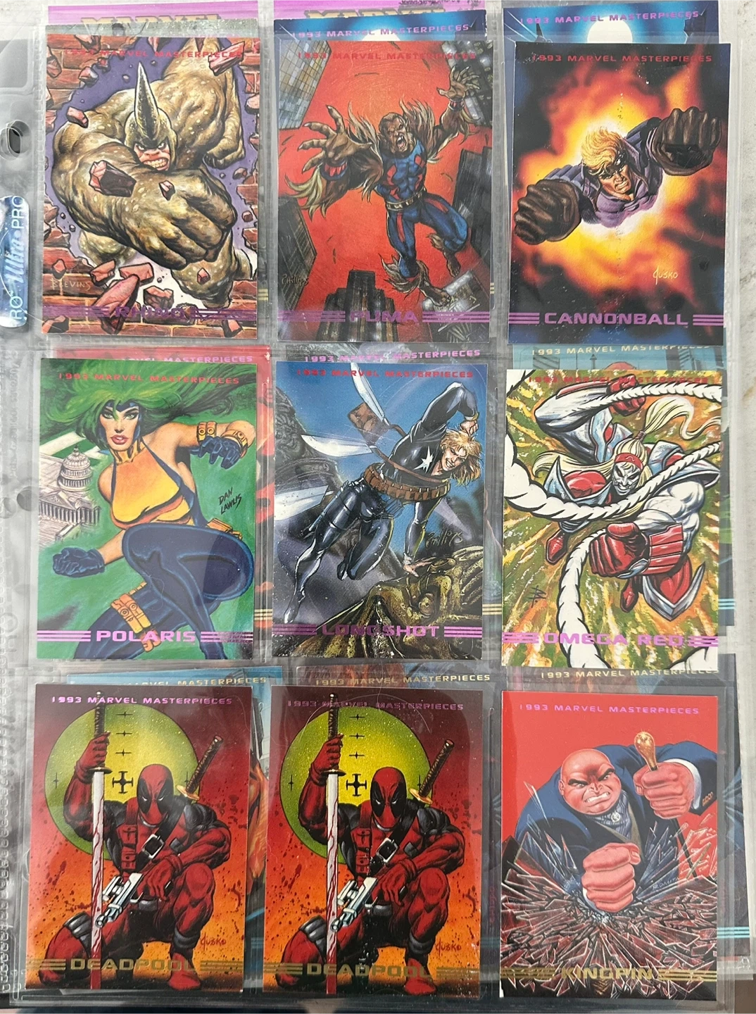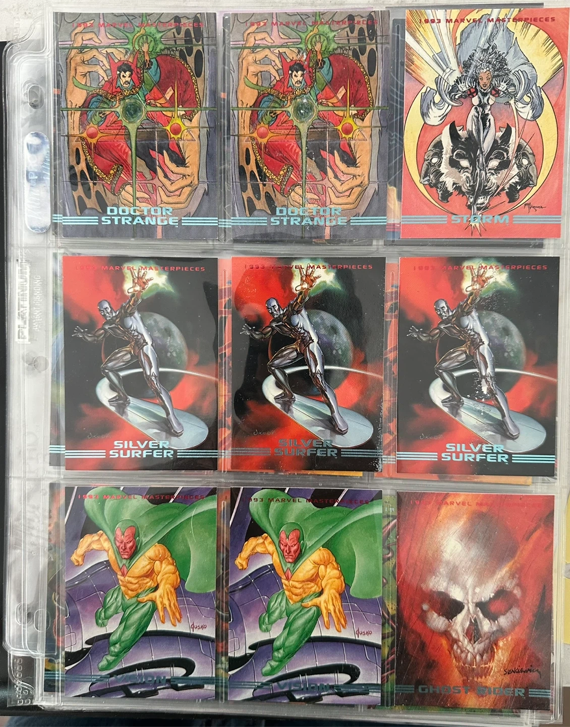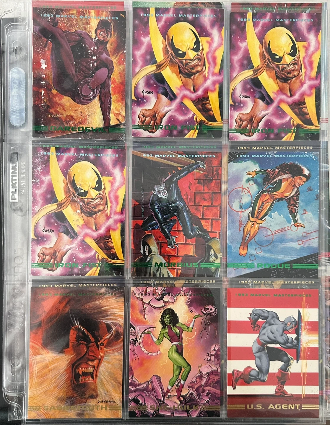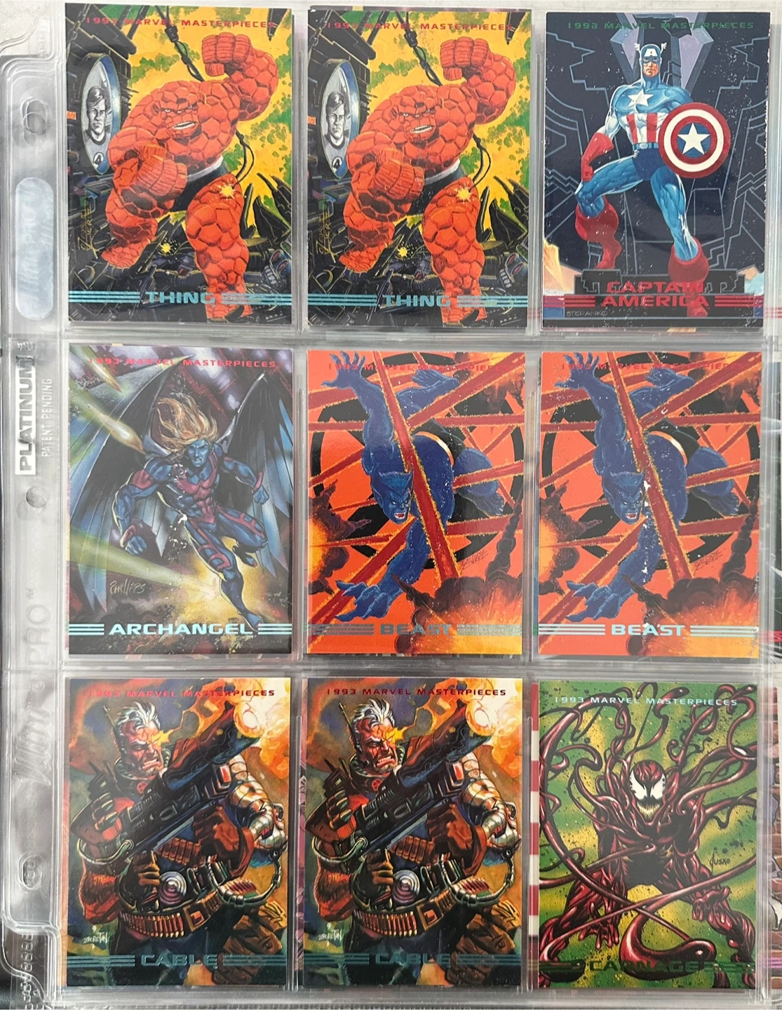 A collection of the 1993 Marvel Masterpieces trading card set (It is NOT a complete set). Great for a collector to pick up individual cards to complete their set. Please contact me for more information on these cards or my other ads for other Marvel trading cards .