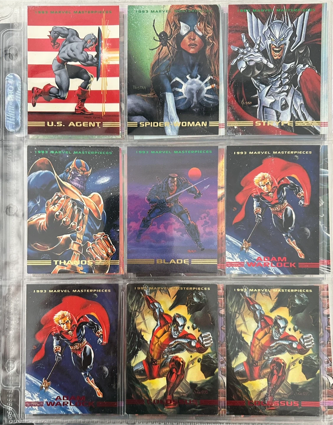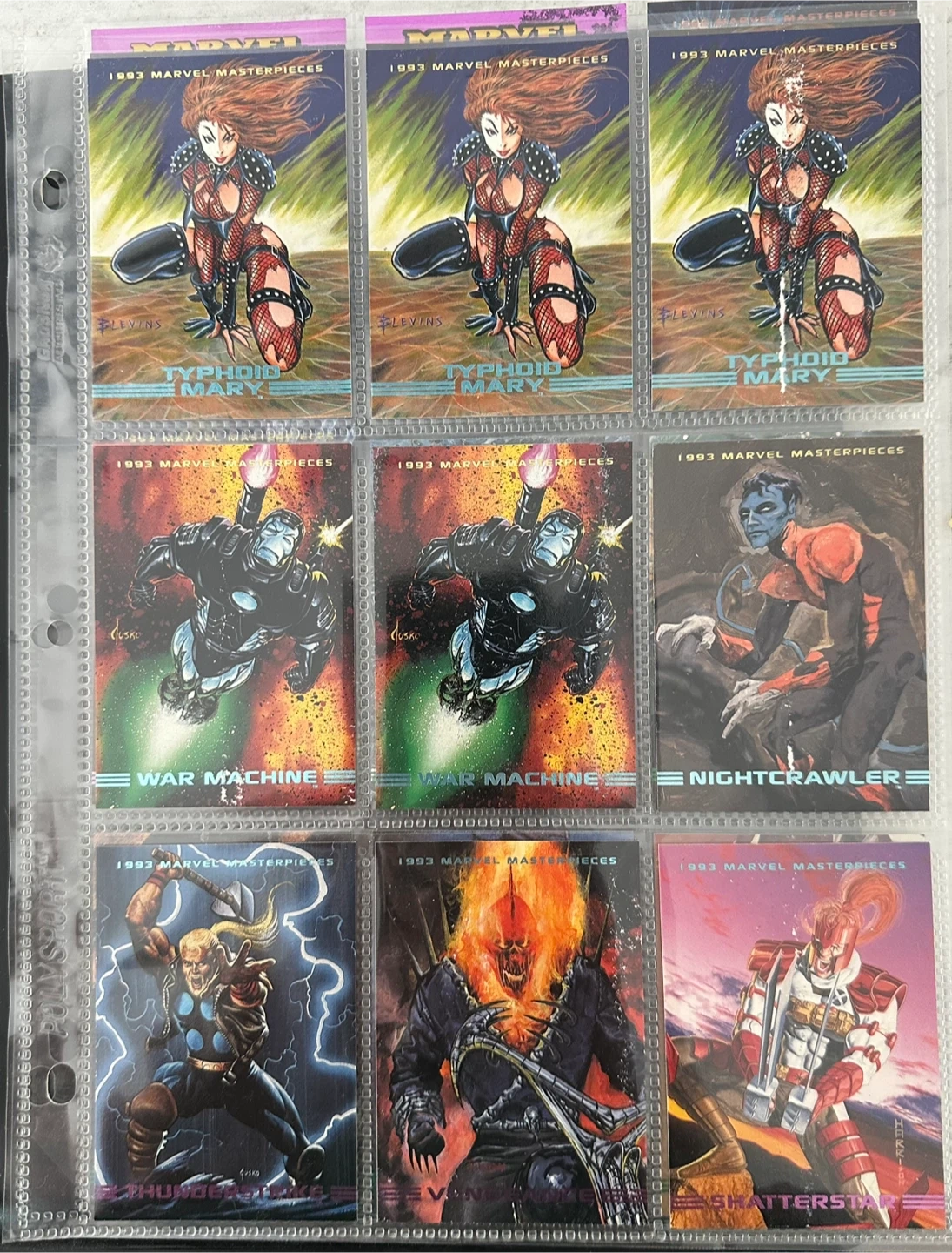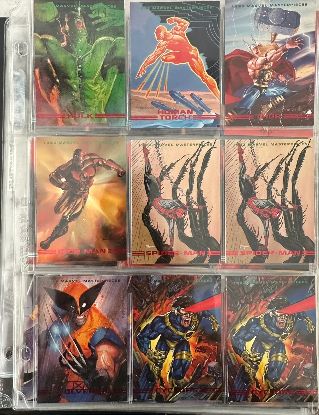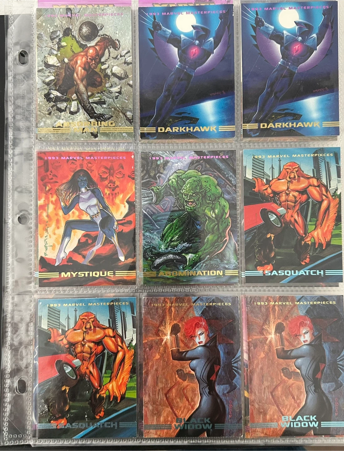 A collection of the 1993 Marvel Masterpieces trading card set (It is NOT a complete set). Great for a collector to pick up individual cards to complete their set. Please contact me for more information on these cards or my other ads for other Marvel trading cards .
