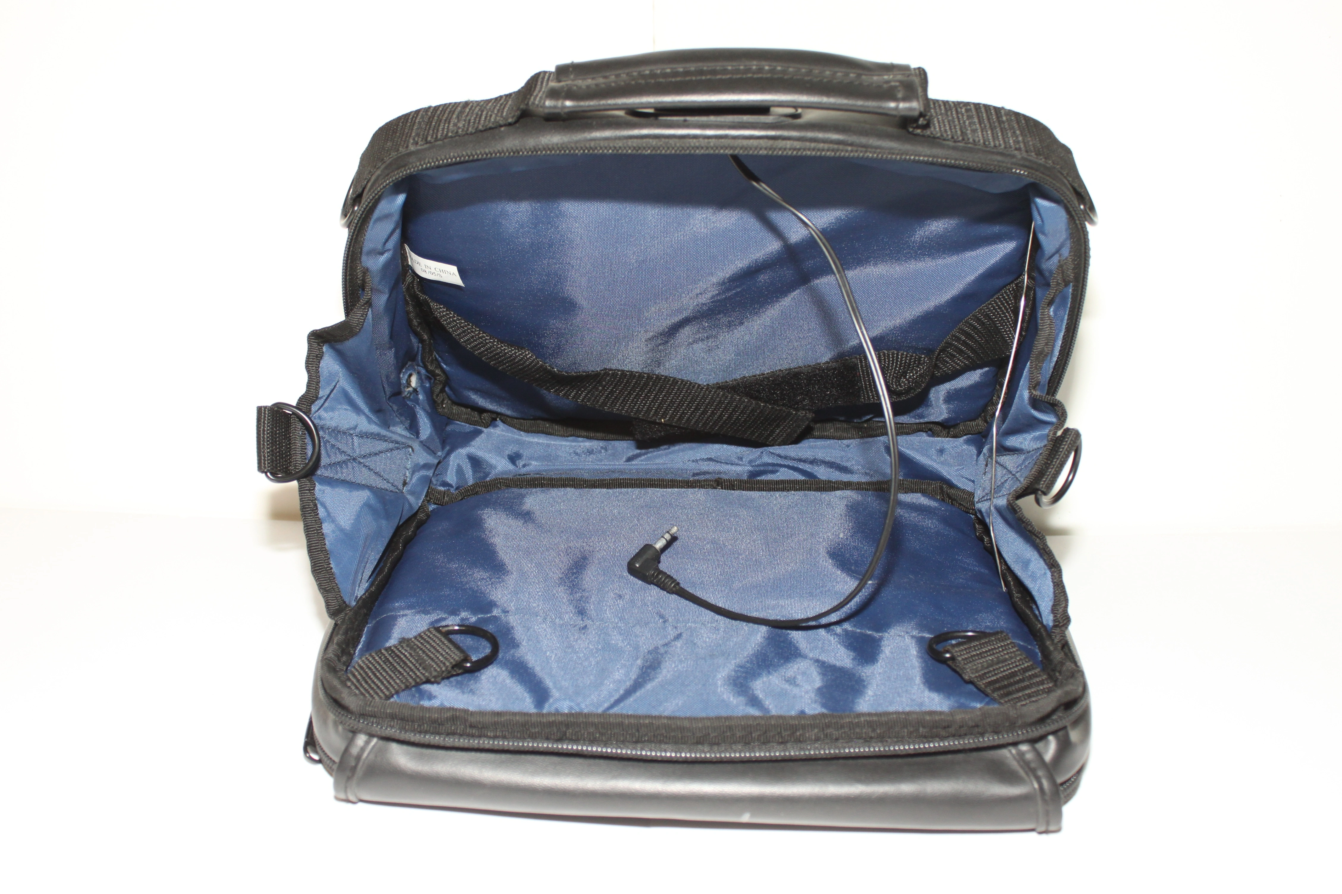 - has a connection for headphones inside and a splitter on the top (under the handle)