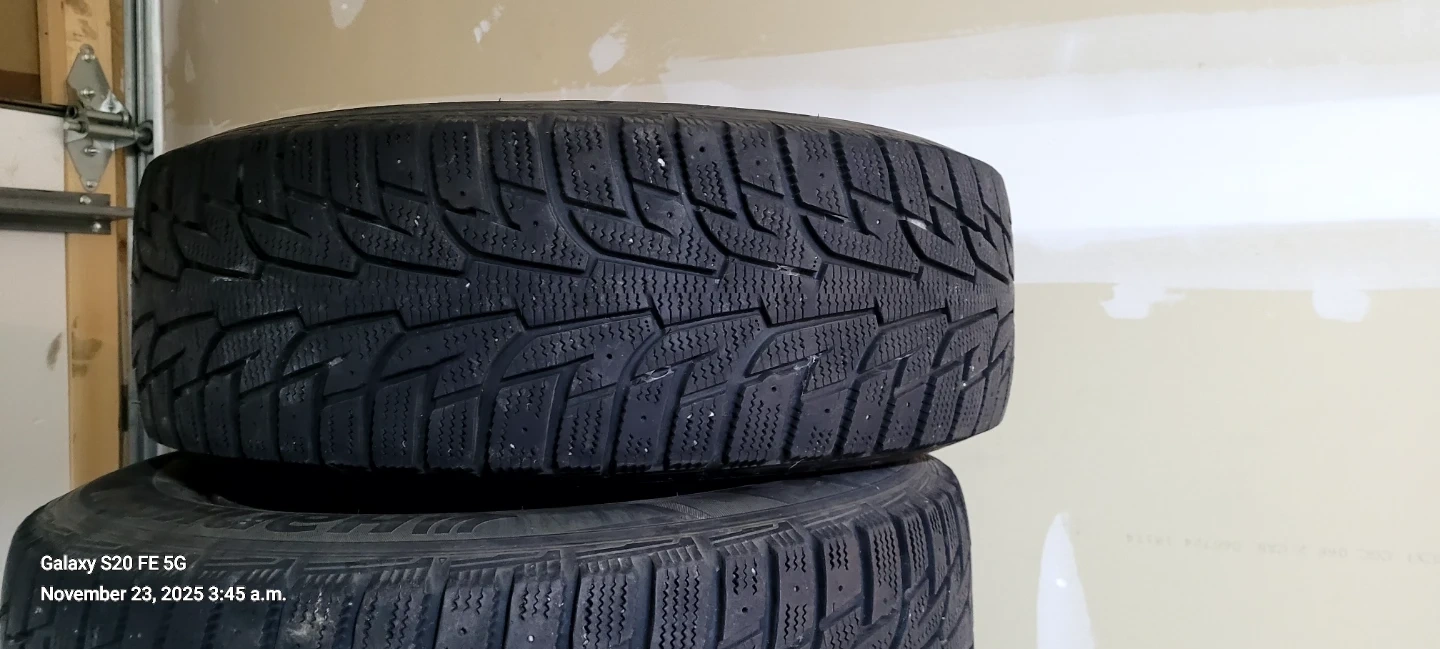 4 winter tires mounted on a steel rim. Tire size is 205/55R16. The tires appears to be in great condition. Ready for winter conditions! Hankook