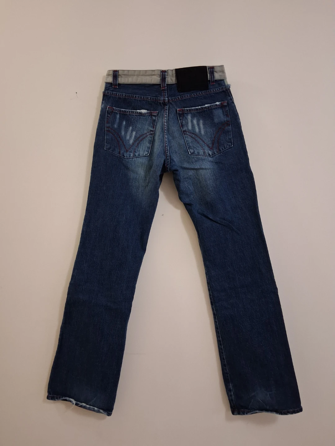 Selling a pair of D&G Dolce&Gabbana jeans in size 31waist and 31 inseam. They're in good condition and have a unique design with a belt detail. The jeans are made in Italy and have a stylish, vintage look. Perfect for adding a bit of edge to your wardrobe! Made in Italy