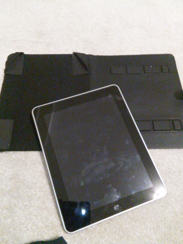 Selling an Apple iPad with 32GB of storage. The model number is A1219. It comes with a black case. The tablet isn't working an it doesn't come with a charger.