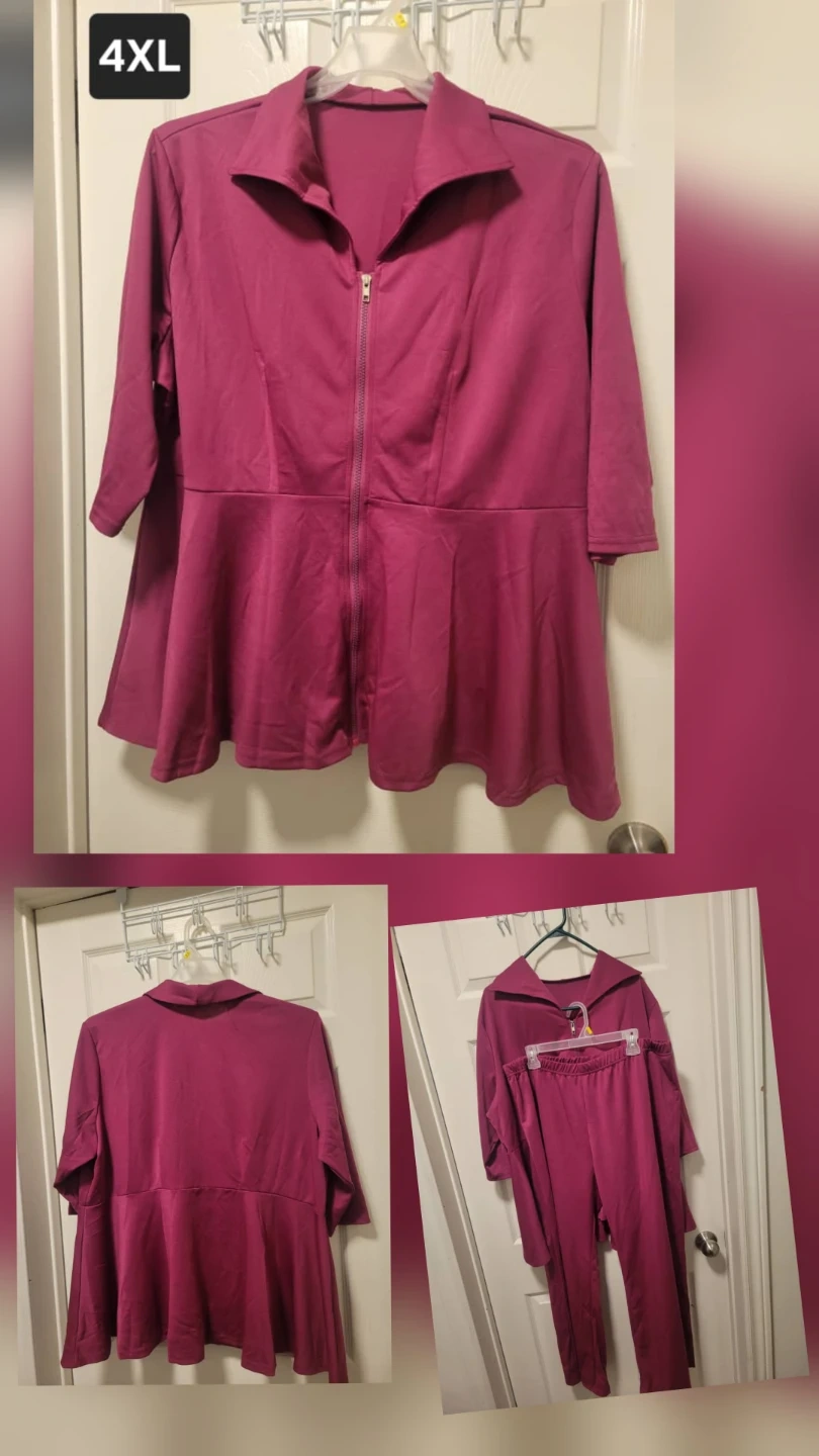 Magenta pant suit in size 4XL. Perfect for a casual day out or lounging at home! The top features a zipper and collared neck. The set includes the matching pant.
