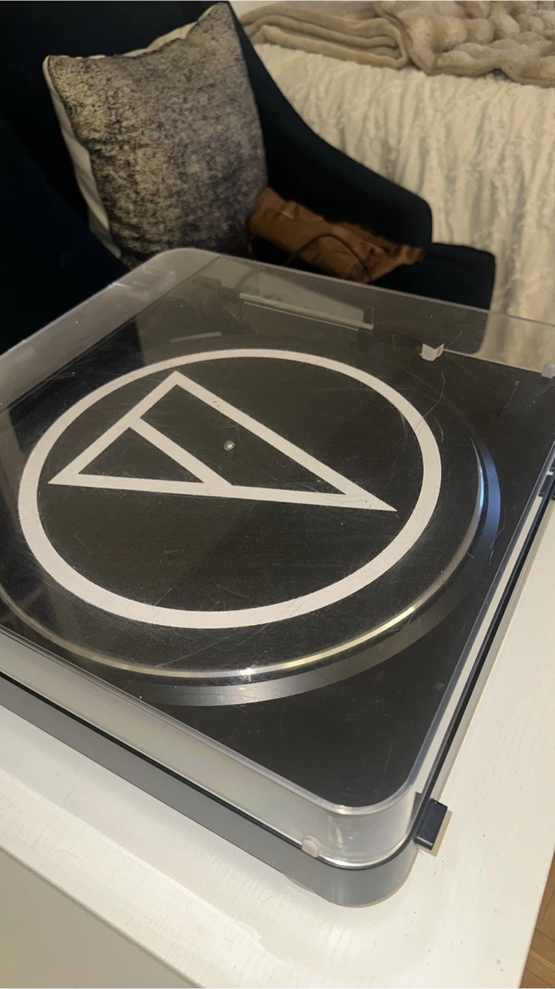 Selling an Audio-Technica AT-LP60-USB stereo turntable. It comes with a clear plastic cover to protect it from dust. Perfect for listening to your favorite vinyl records!