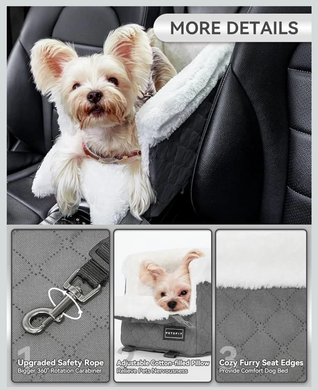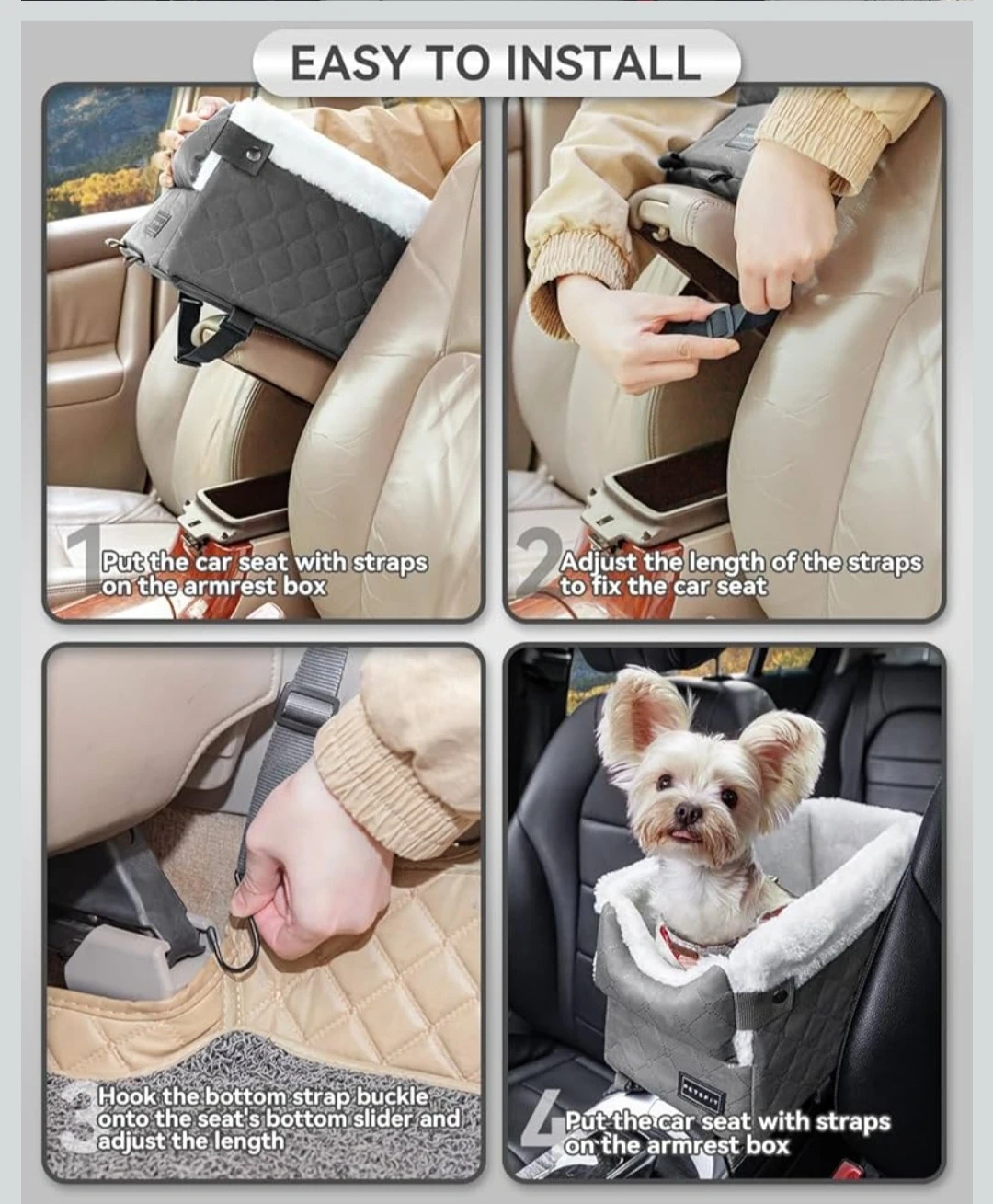 Center Console Dog Car Seat with Safe Protection Hooks,..