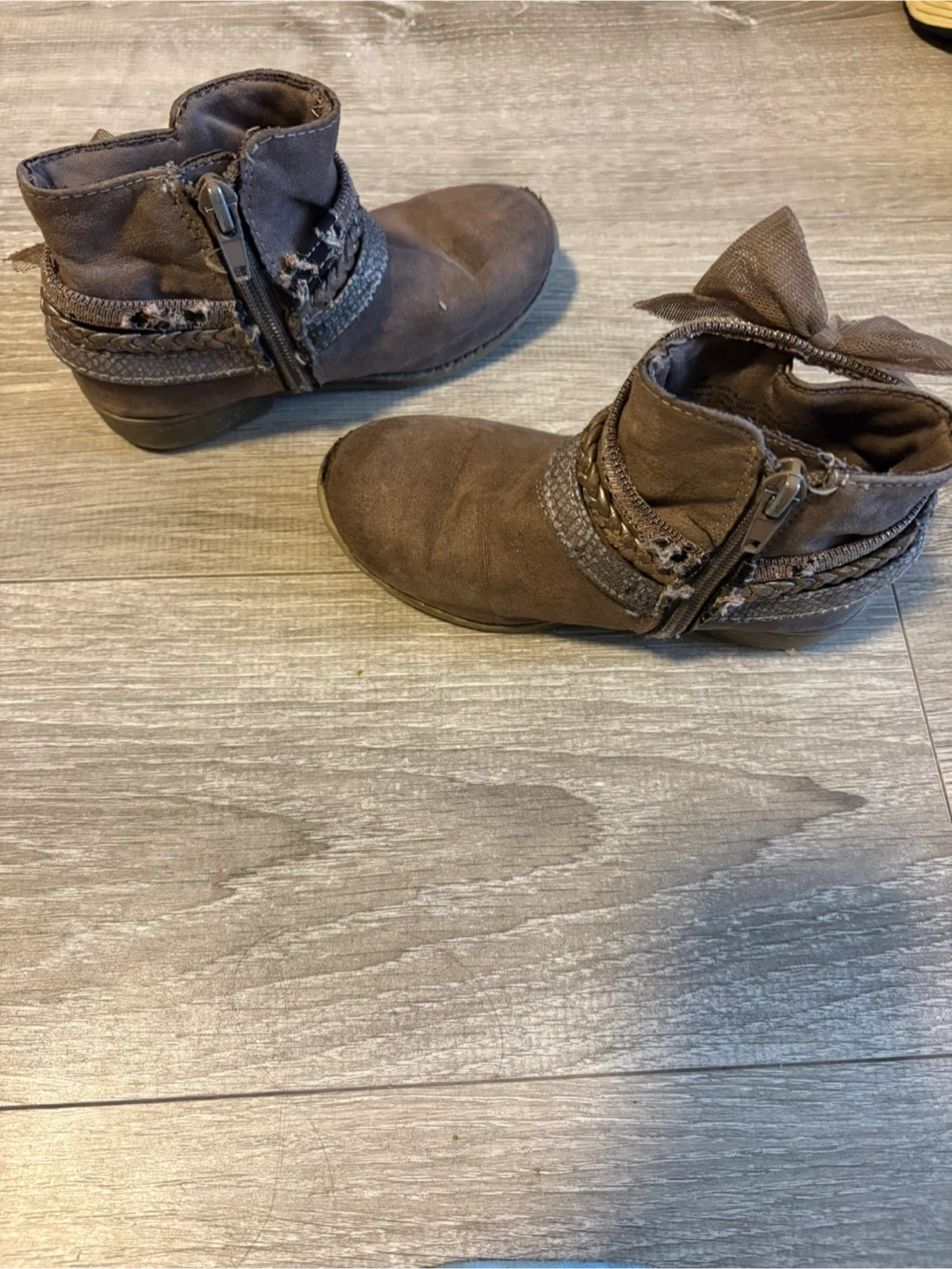 Brown Faux Suede Ankle Boots with Bow