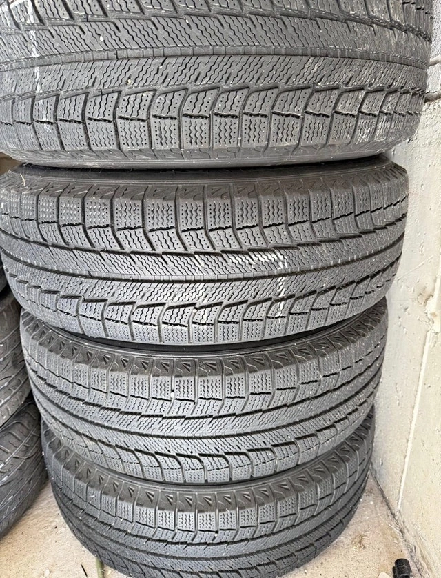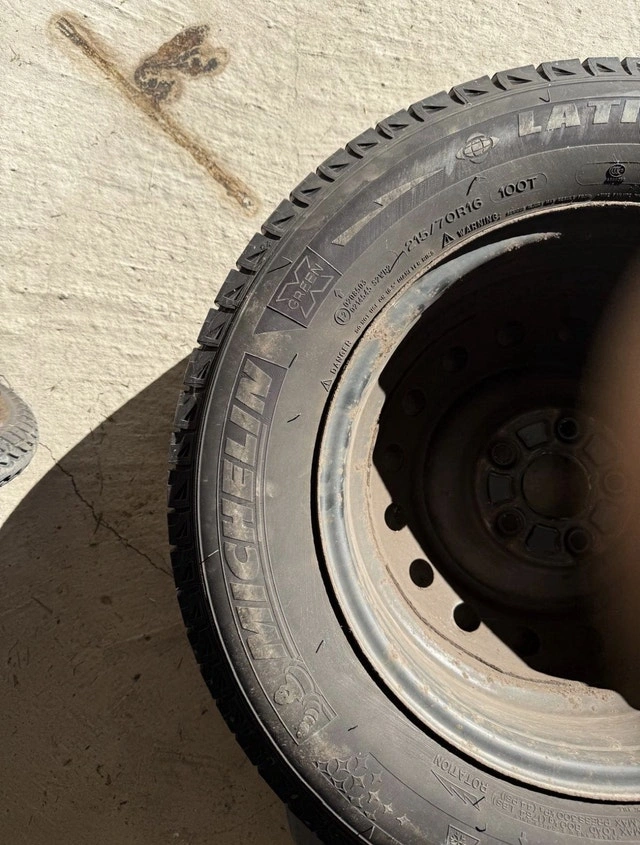 These are four Michelin X-Ice Snow tires, size 215/70R16, mounted on steel rims. These tires have seen some winters, so they're not exactly new, but they still have life in them as there is low wear and tear and there is about 60% tread remaining. If the ad's still up, the tires are still available – no need to ask! Price is negotiable.