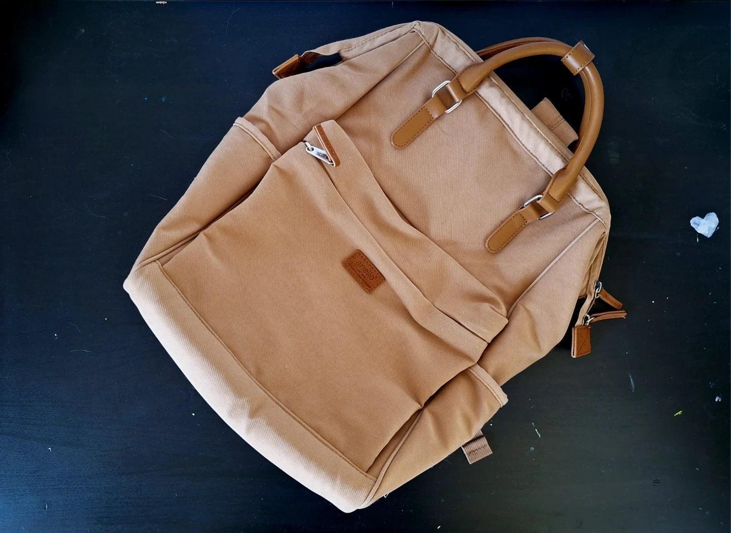 This Anello backpack is made of durable tan canvas with faux leather accents. It features adjustable shoulder straps and a top handle. It's a beautiful backpack for everyday use!