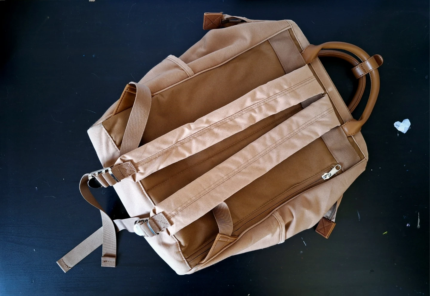 This Anello backpack is made of durable tan canvas with faux leather accents. It features adjustable shoulder straps and a top handle. It's a beautiful backpack for everyday use!