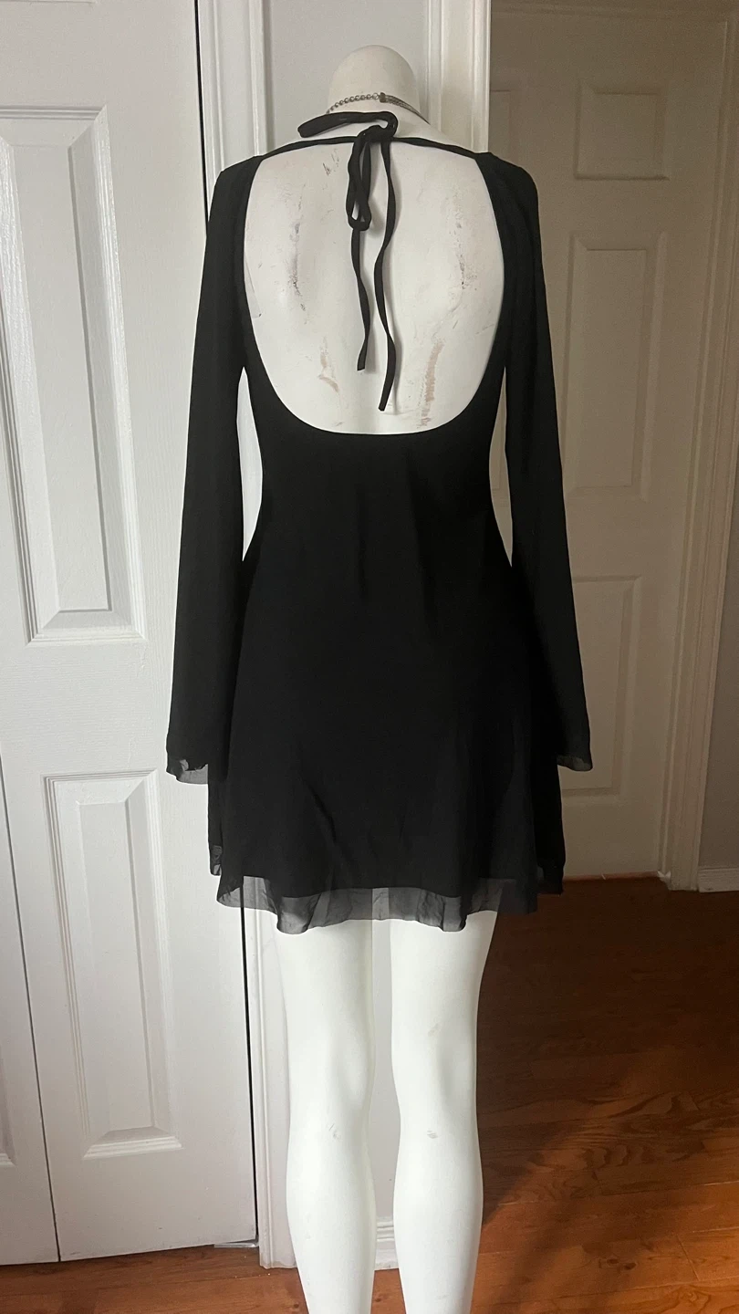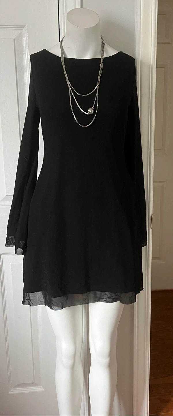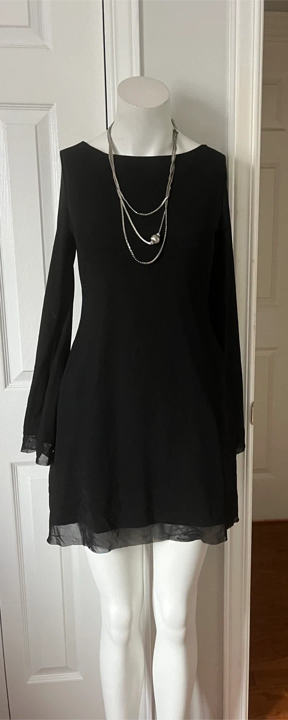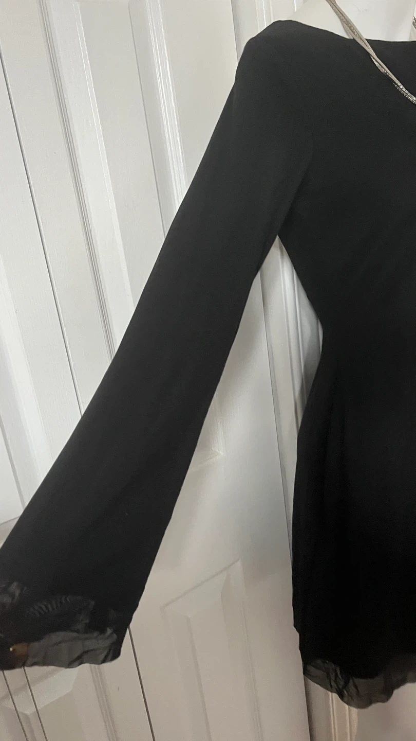 Black long-sleeve dress with sheer hem size medium