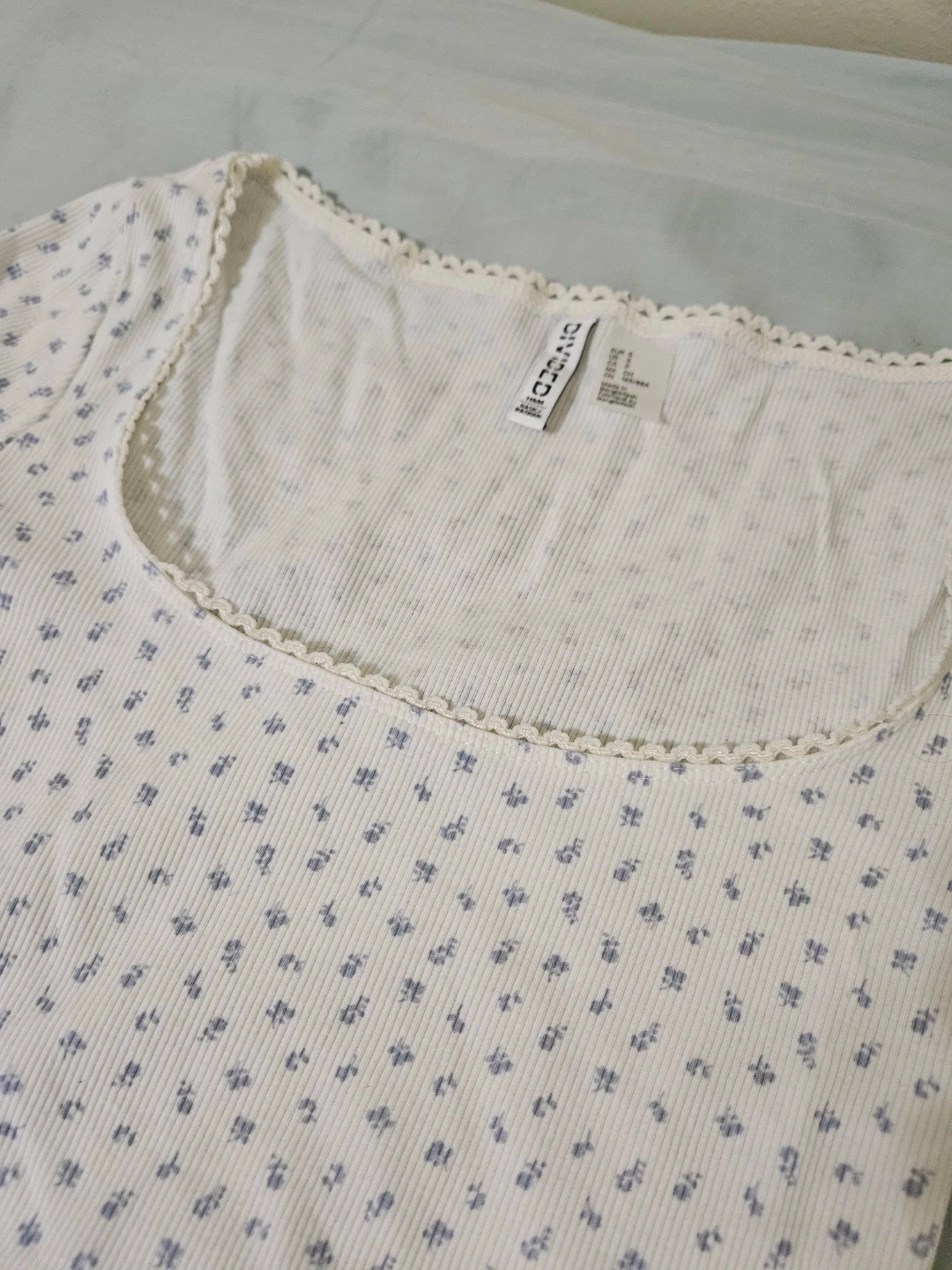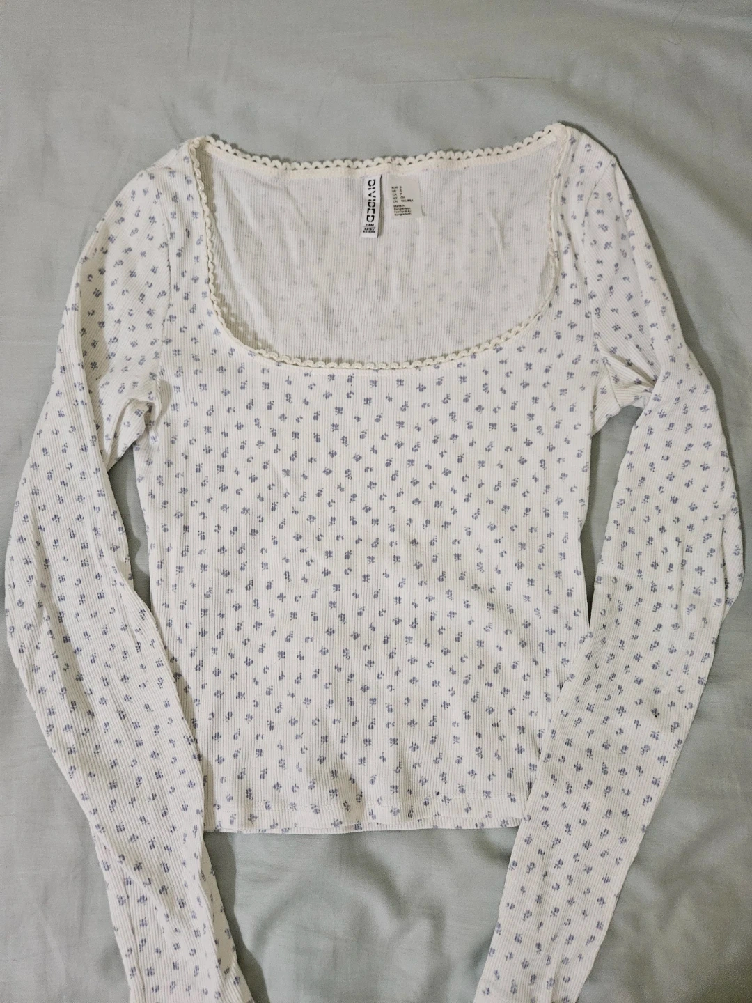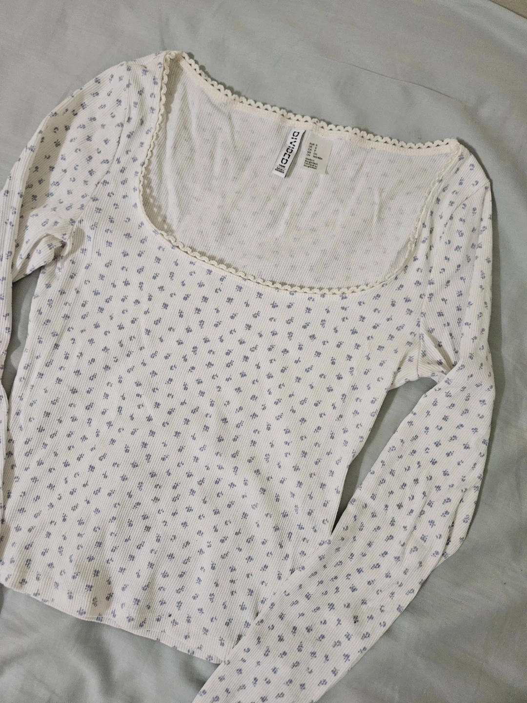Buy & SellH&M Long Sleeve Floral TopH&M Long Sleeve Floral Top$5This is a white long-sleeved top with a ditsy floral print in size small. It features a square neckline with lace trim. Material is a ribbed knit.ConditionLike newSizeSWHERE TO MEETCheck LocationView MapSELLERverifiedSelinaUniversity1165 reviews0 chats·0 favorites·17 viewsSEND CHAT TO SELLERHi Selina! I’m interested in your listing.Hi Selina! I’m interested in your listing.Get the Karrot app to chatSign In to chat