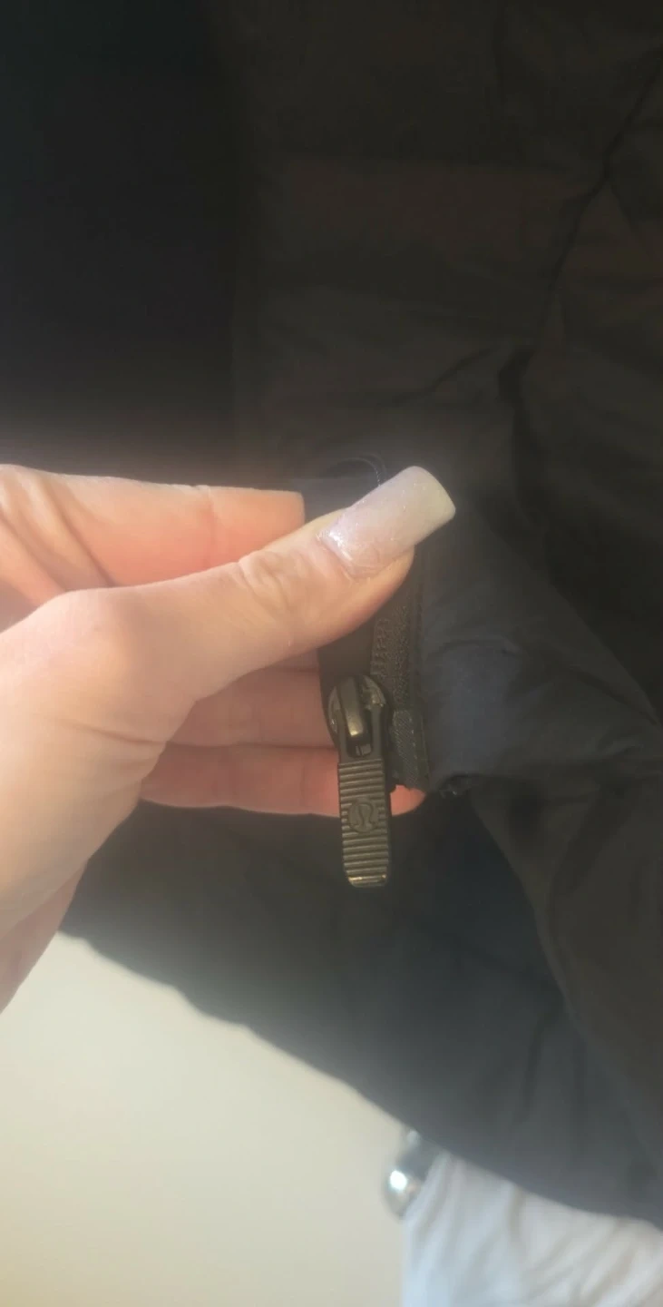 This is a black Lululemon puffer vest. It's a sleeveless design with a full zip front. It's perfect for layering on cooler days!