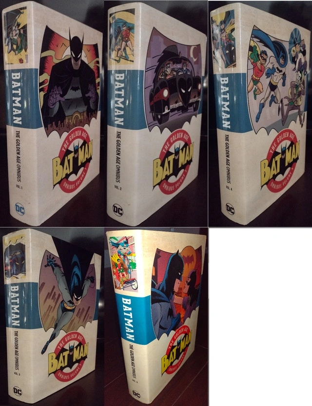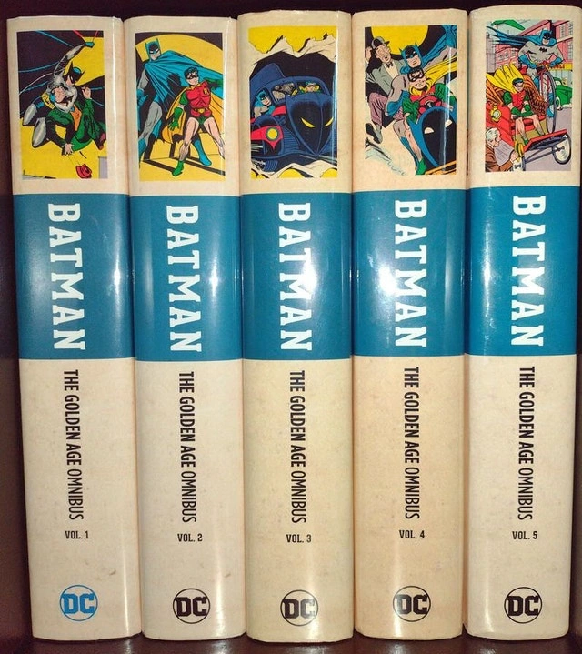 Selling all 5 volumes of the Batman Golden Age Omnibus for $350. These are like new; I only marked them as used because the original plastic wrap was removed. I'm not splitting the set up – it's all or nothing. I'd prefer not to ship, but if it's necessary, the cost will be extra.
