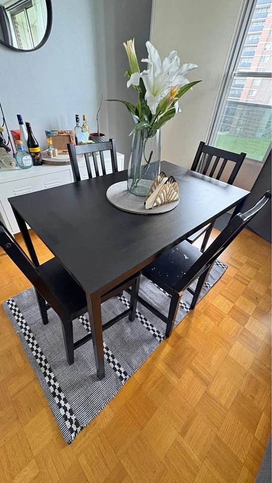 Selling a slim, space-saving dining table that’s perfect for a small family, apartment, or condo. Its sleek design makes it easy to fit into tighter spaces while still offering enough room for meals, work, or family time.