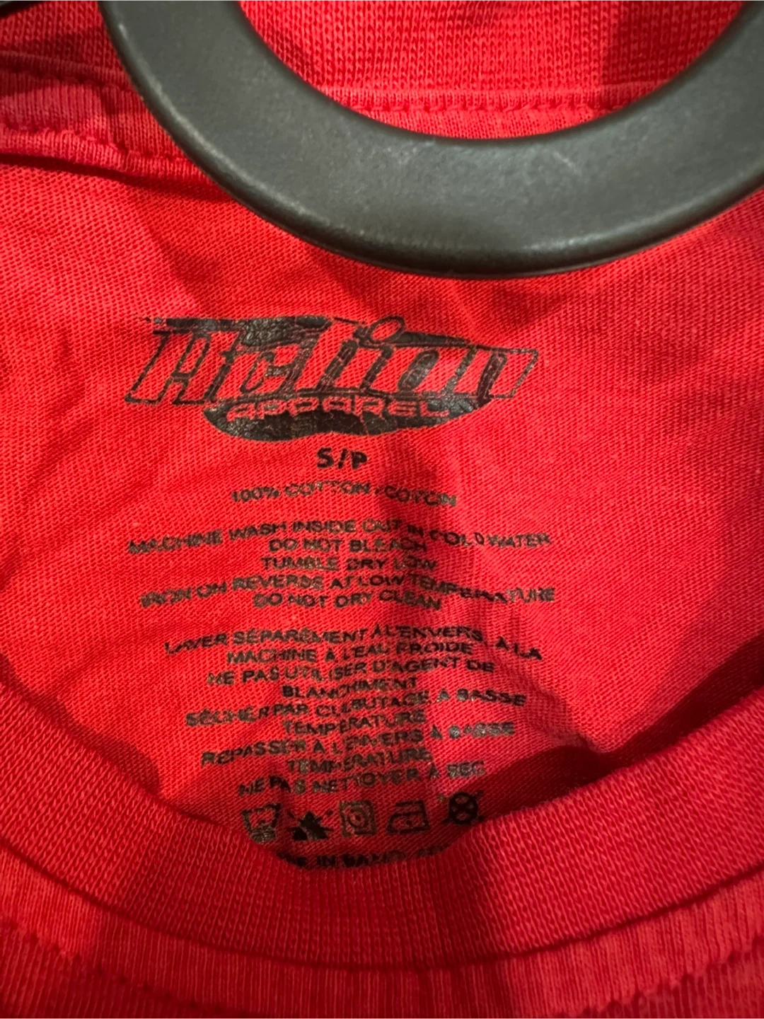This red t-shirt features the quote "I HAD MY PATIENCE TESTED. I'M NEGATIVE" printed in bold lettering. It's made of 100% cotton and is a size S/P. Machine wash inside out in cold water.
