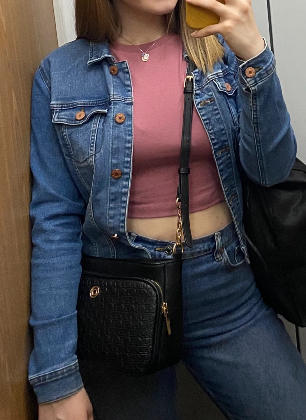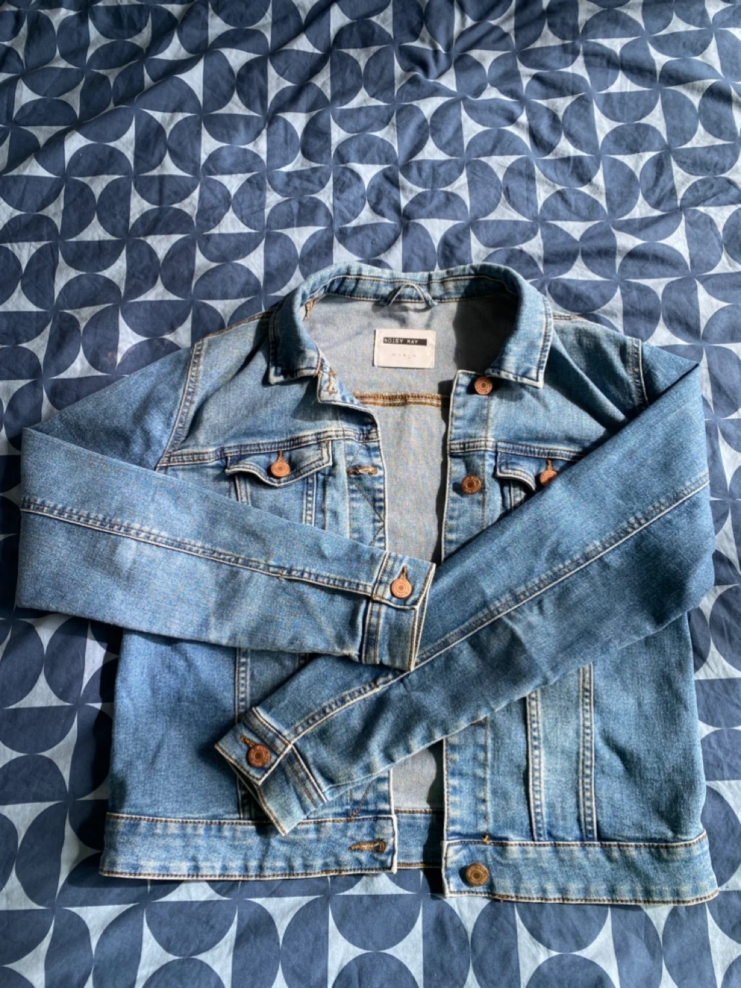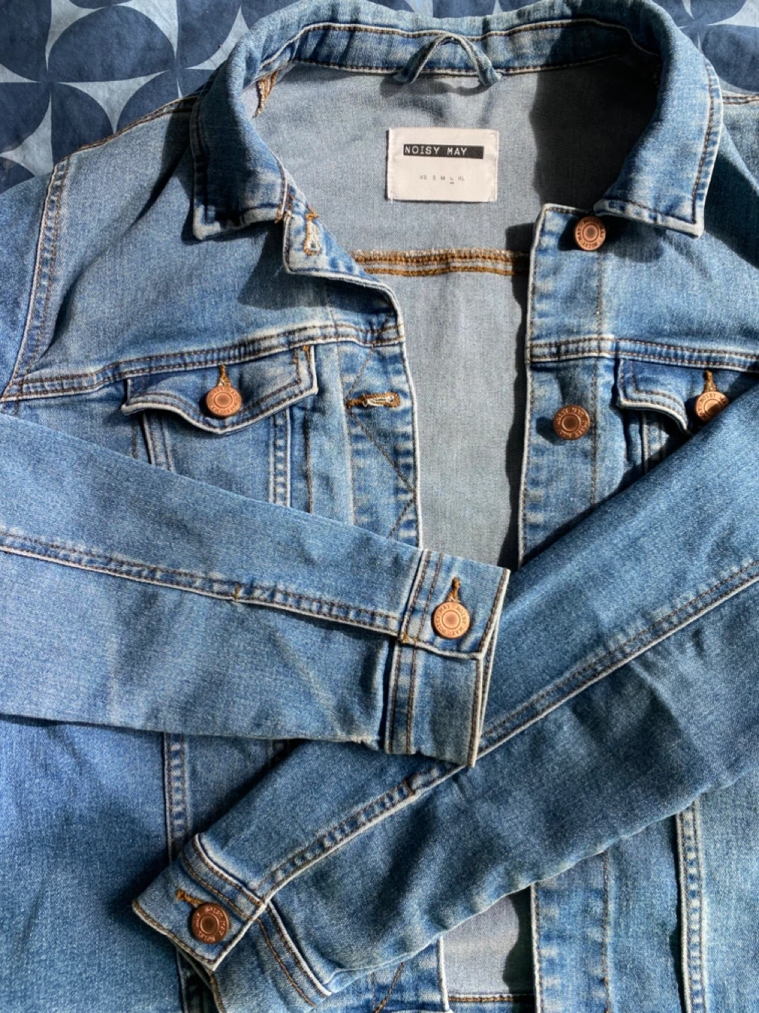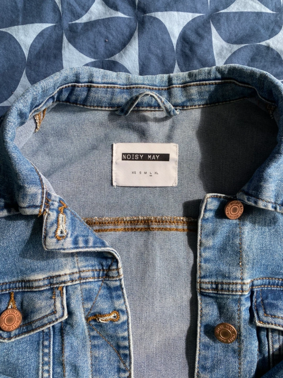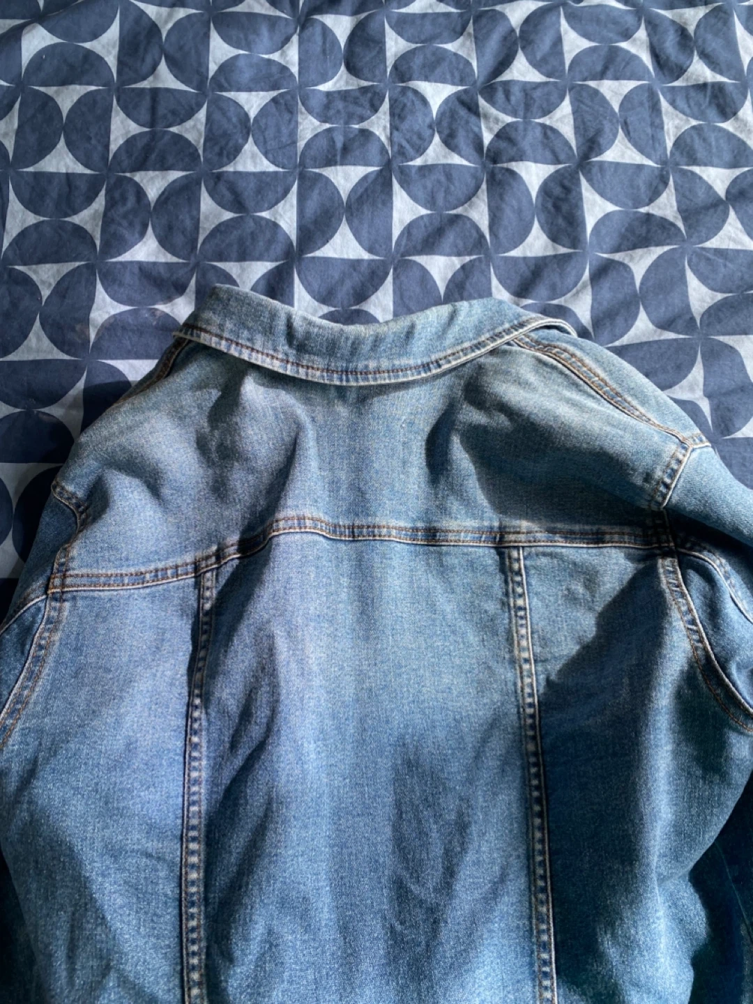 This jacket was so, so loved. Unfortunately, I haven’t worn it in years so I’m selling. It says size large but it’s more medium imo. A little bit of a washed denim look. I always got compliments when I wore it. 🥹