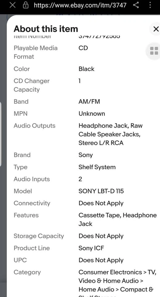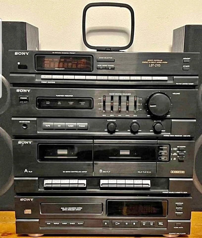 Vintage Sony LBT-D115 stereo system, includes CD player, dual cassette deck, tuner, and amplifier, along with speakers. Feel free to message if you have any questions!