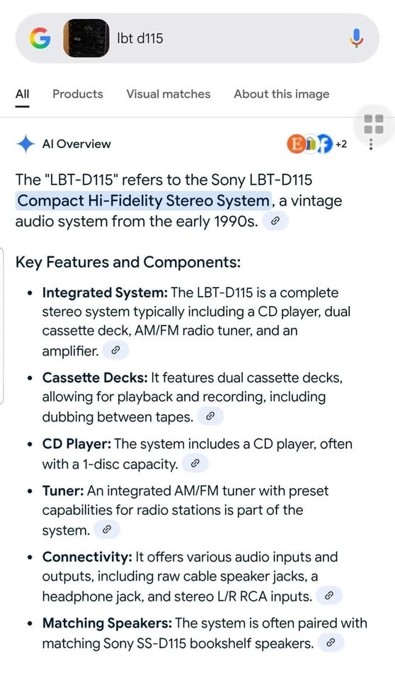 Vintage Sony LBT-D115 stereo system, includes CD player, dual cassette deck, tuner, and amplifier, along with speakers. Feel free to message if you have any questions!
