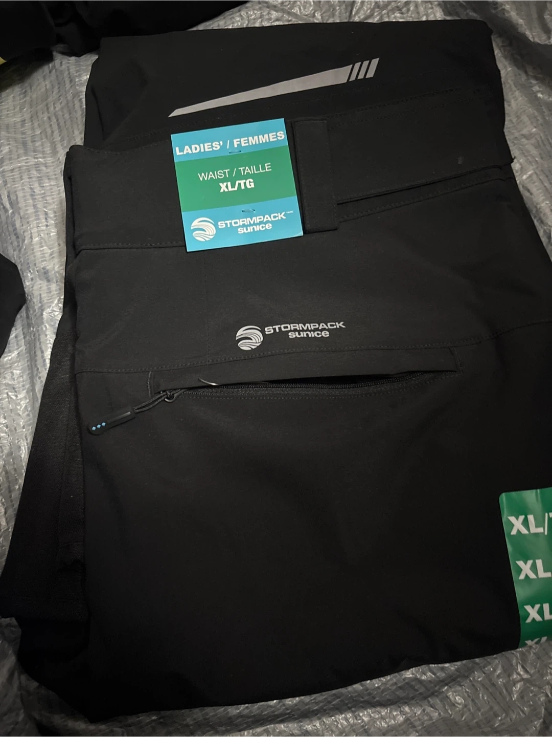Selling a pair of Sunice Stormpack ladies' waist pants in size XL. They are black and look to be in great condition. Perfect for outdoor activities!